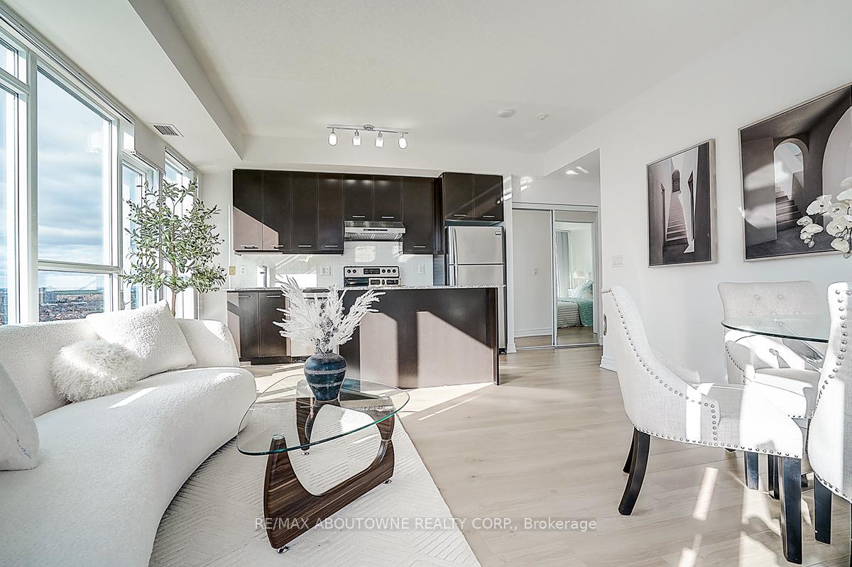 Experience modern convenience living in this open-concept southwest corner unit, ideally situated in one of the best locations in City Centre Mississauga. Bathed in natural sunlight, this spacious home features impressive floor-to-ceiling windows and soaring 9 feet ceilings throughout. Offering 853 sq. ft. of well-designed living space, the unit is further enhanced by an expansive wrap-around balcony-perfect for seamless indoor-outdoor living. Immaculately maintained condition with fresh NEW painting, BRAND NEW laminate flooring, BRAND NEW bathroom countertops and sinks & BRAND NEW dishwasher. Enjoy the convenience of a premium parking spot with no adjacent cars, providing added ease and comfort.Residents enjoy world-class amenities, including a 24-hour concierge, fully equipped fitness centre, full-size basketball court, party and media rooms, rooftop terrace, and more! Just steps to Square One Shopping Centre, the Living Arts Centre, Sheridan College, GO Transit, restaurants, the library, etc. Easy access to public transit and Highways 403/401!
