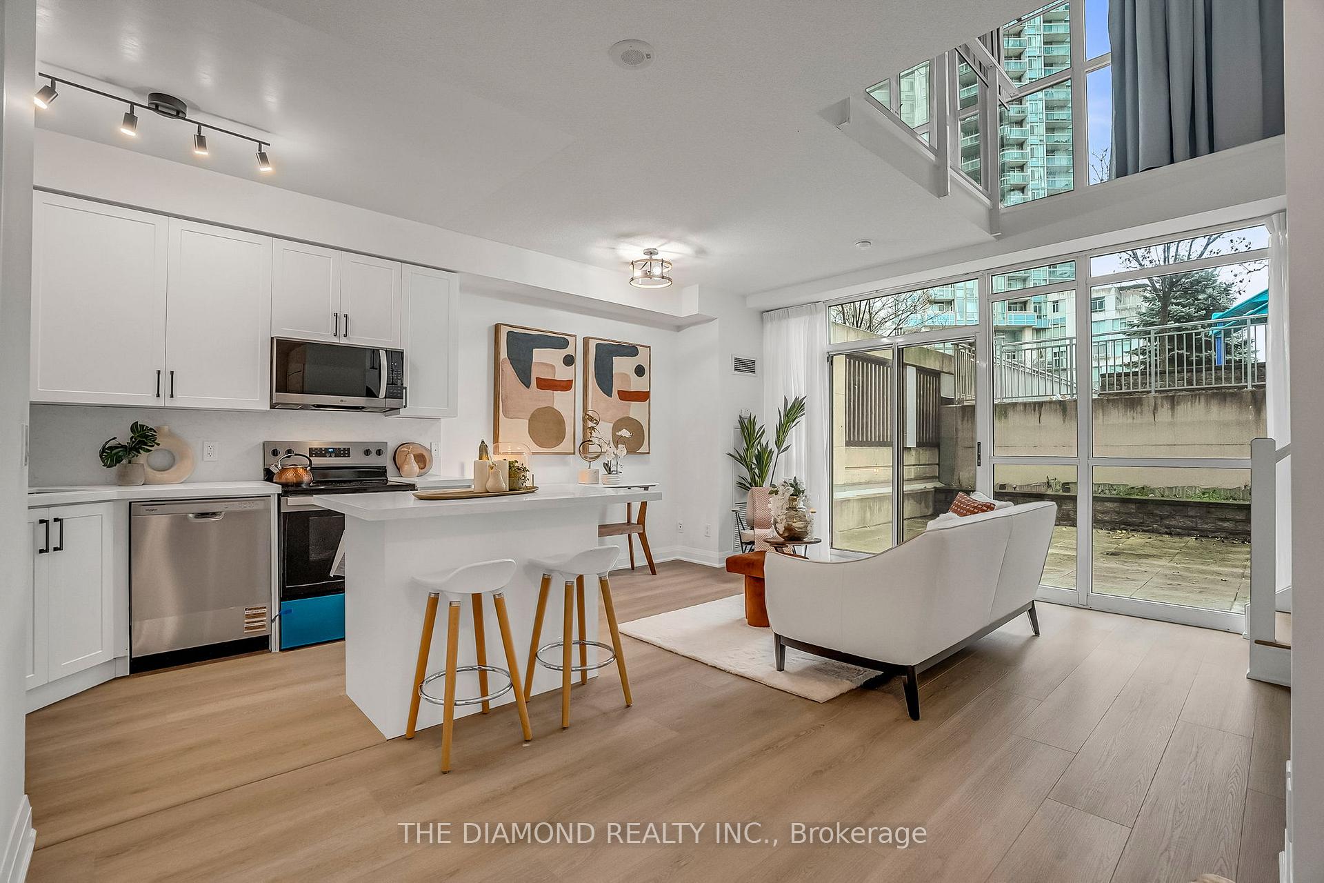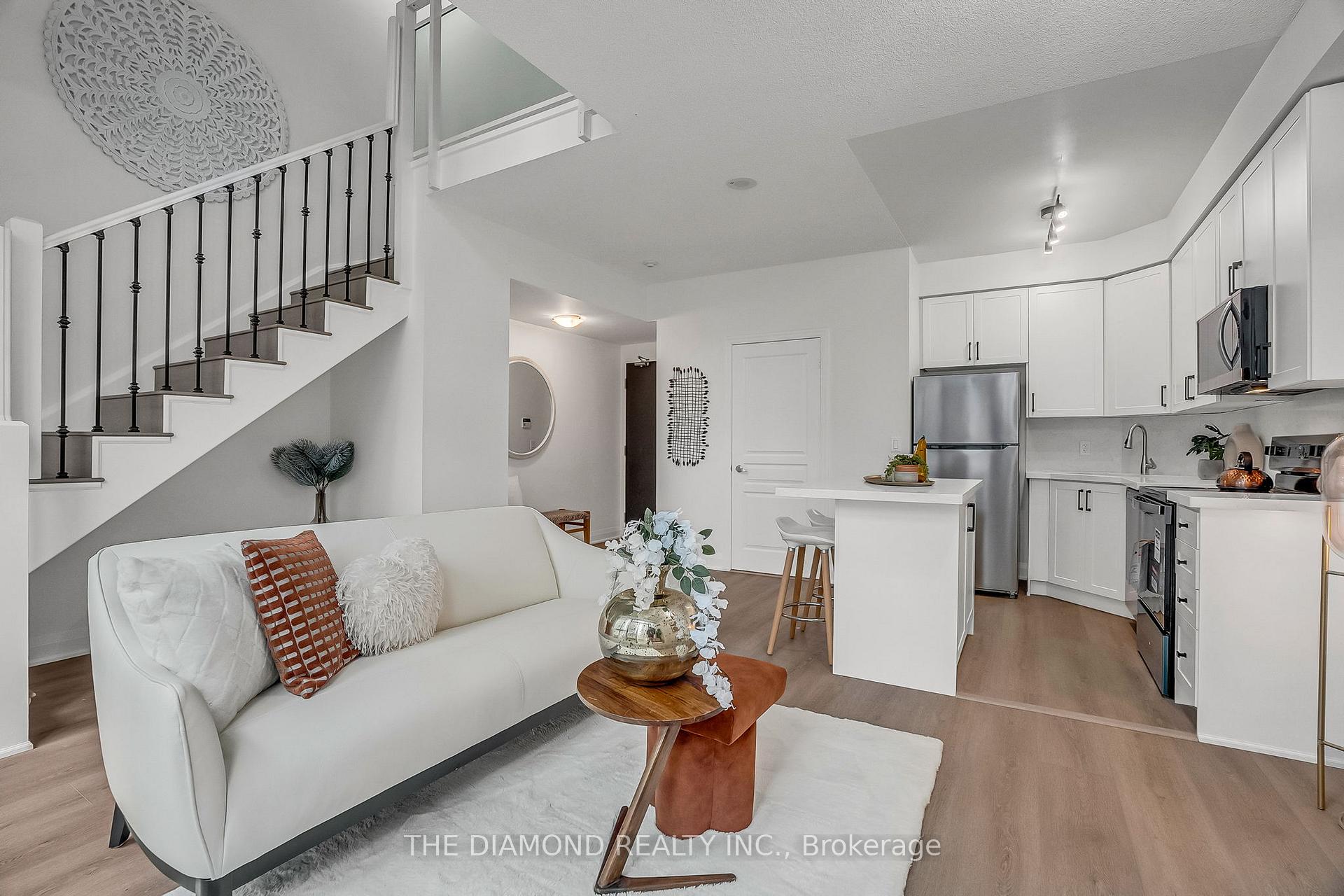 Bright and modern, this nearly 800 sq. ft. 1-bedroom, 2-bath, 2-storey loft features new laminate flooring, a newly updated kitchen with stainless steel appliances, quartz counters, and a breakfast bar. Floor-to-ceiling windows fill the space with natural light, and a large private terrace offers the perfect spot for entertaining. A stylish, open-concept home with exceptional indoor-outdoor living. Steps from square one, bus terminal, go buses, Sheridan college and more!