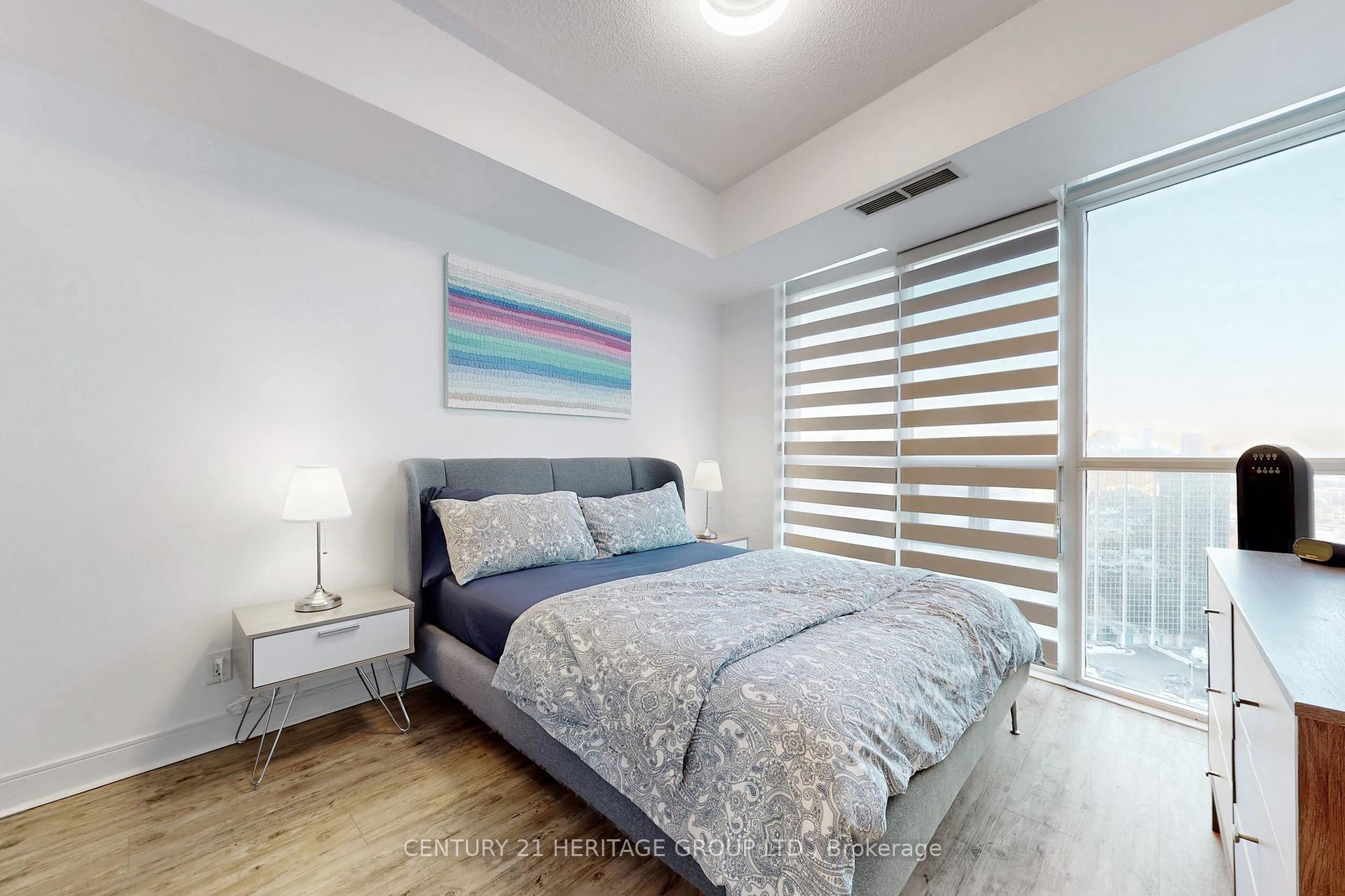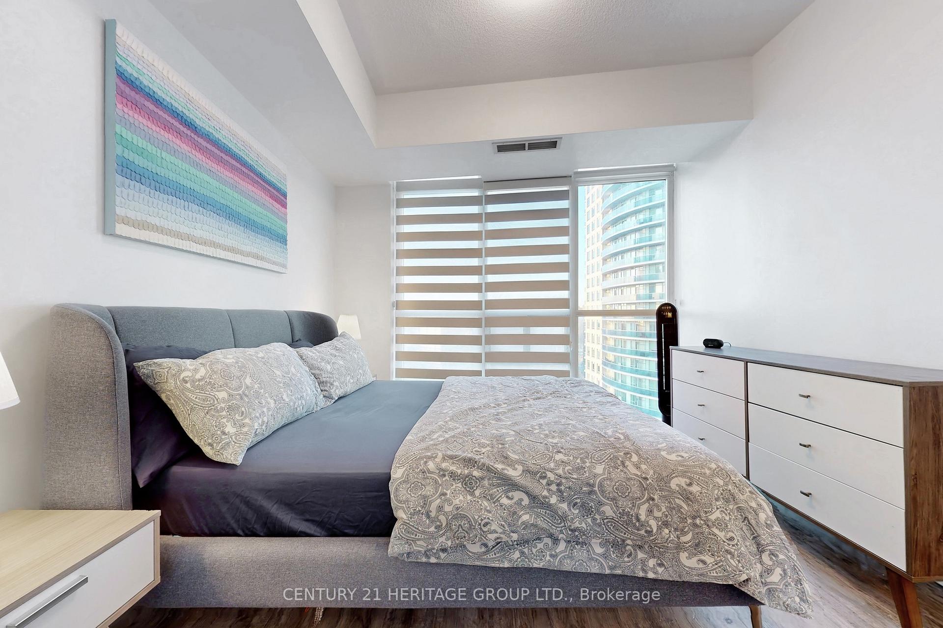Welcome to this well-appointed 2-bedroom, 2-bathroom west-facing suite in the heart of Mississauga's City Centre. This open-concept unit features sleek vinyl flooring, 9-foot ceilings, and a modern kitchen with granite countertops and stainless steel appliances. The living/dining area flows seamlessly to a private balcony with city views - a perfect spot for your morning coffee or evening unwind. Included are 1 underground parking space and 1 locker for extra storage. Residents enjoy access to a full suite of amenities: indoor and outdoor pools, a hot tub, a fully equipped gym, a party room, a media suite, a BBQ patio and more. Fantastic walkable location - just minutes to Square One, GO transit, major highways, shopping and services. Don't miss this opportunity to own in one of Mississauga's most central, amenity-rich buildings.