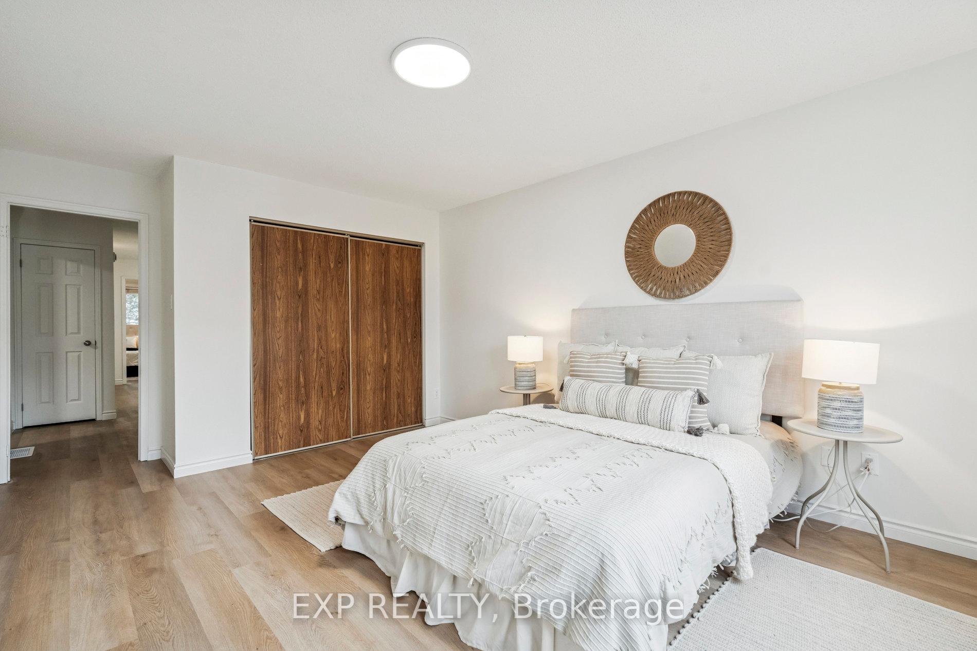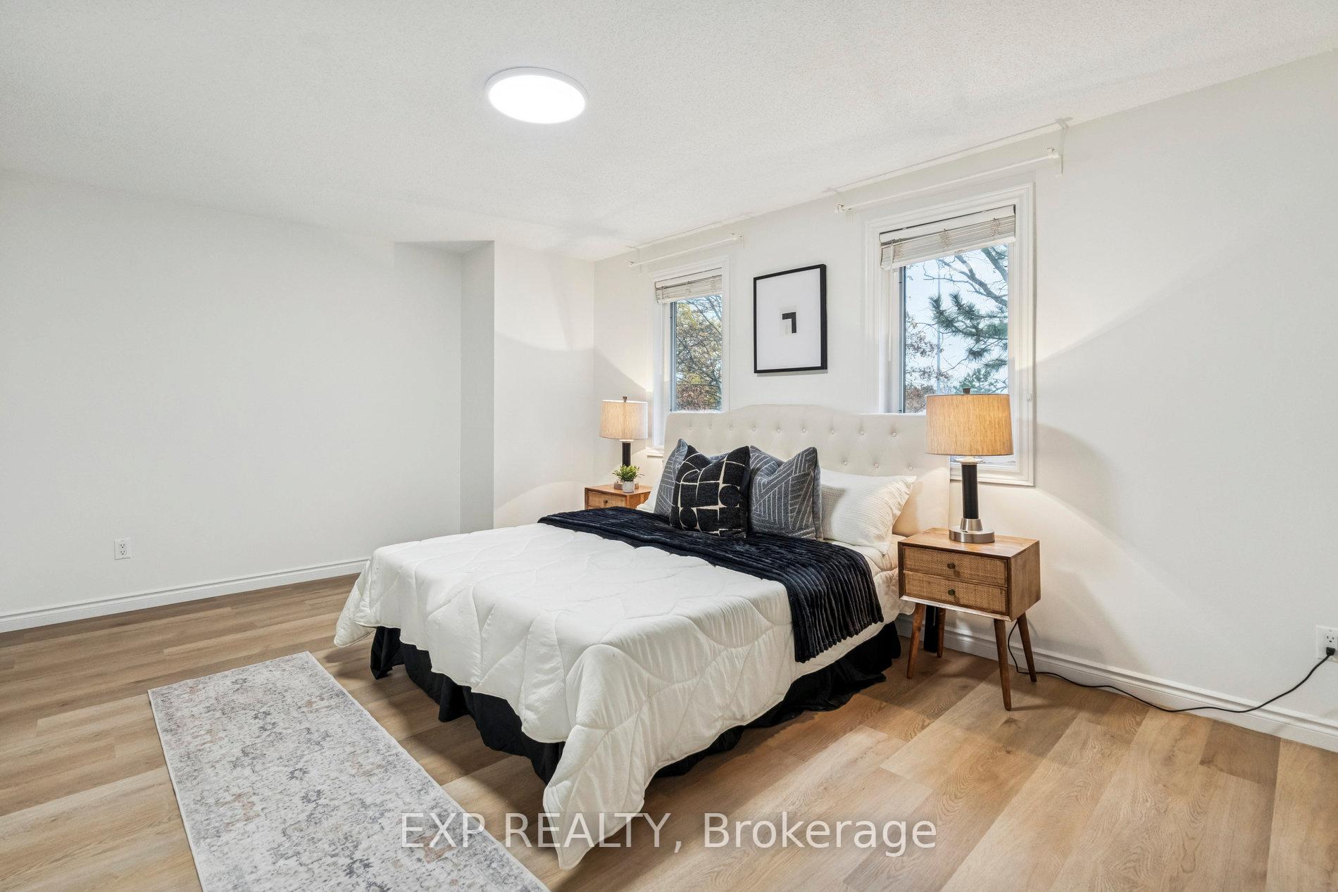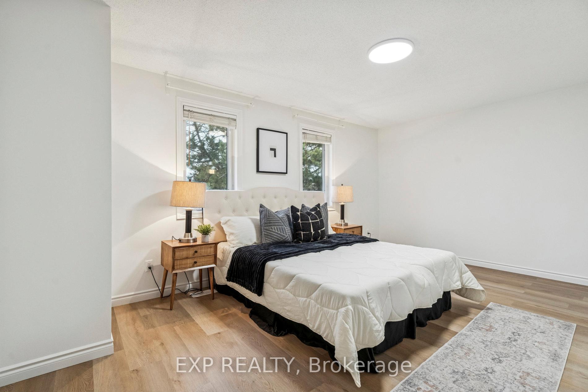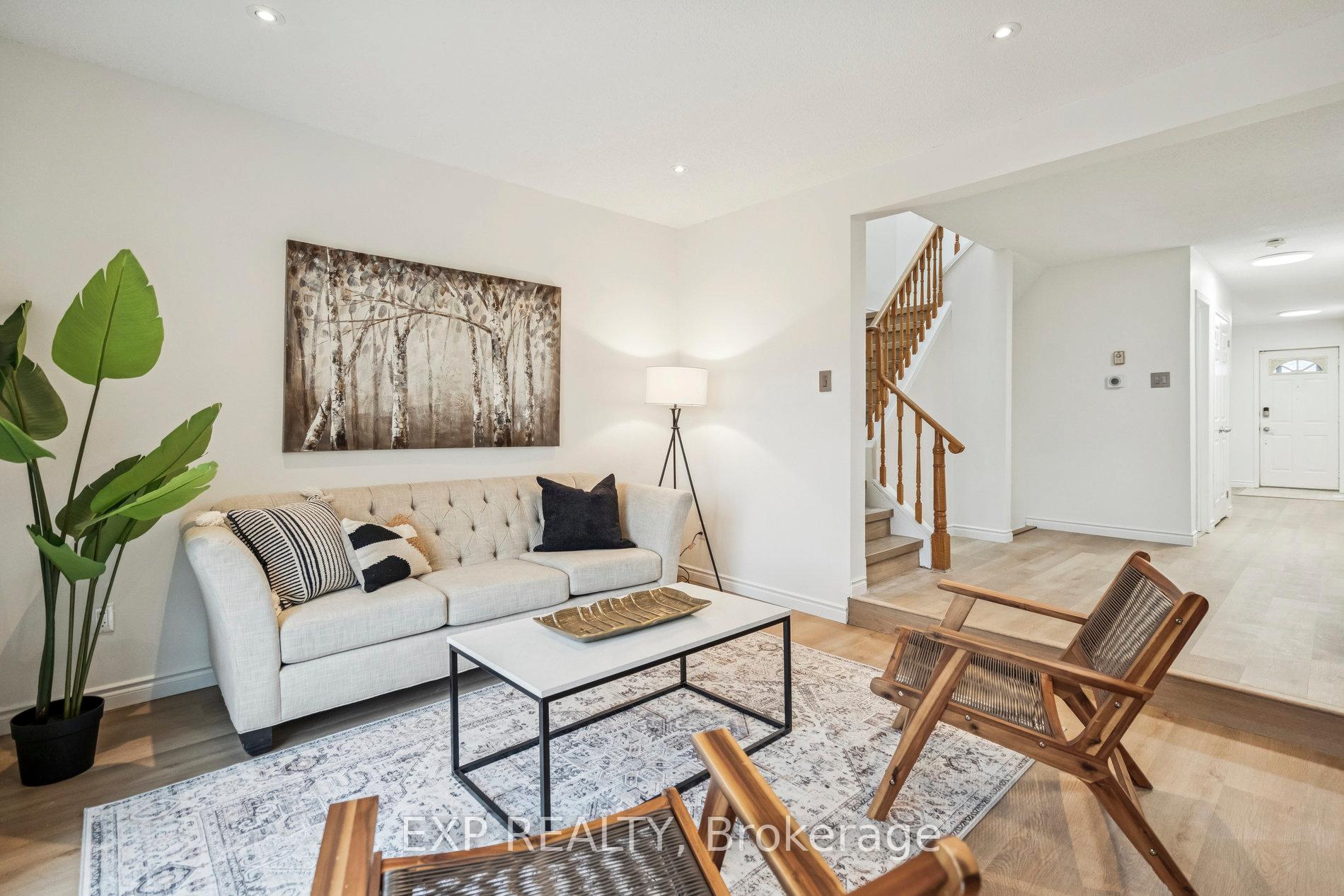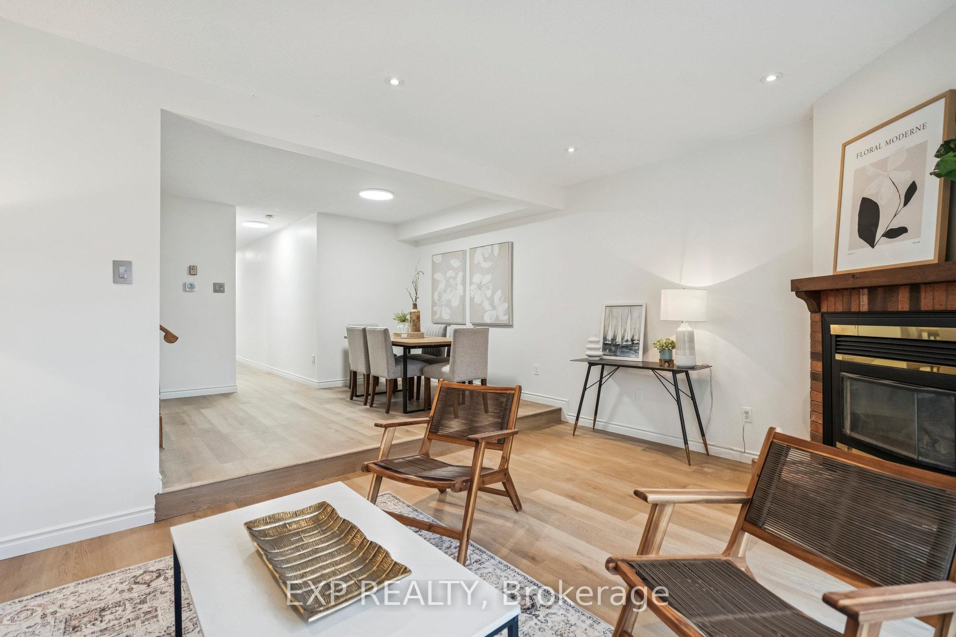 Nestled in Mississauga's desirable Erin Mills area, this beautifully cared-for, move-in-ready townhome offers the perfect balance of comfort, style, and community. Featuring 3 spacious bedrooms and 2.5 bathrooms, 1 car garage and 1 driveway parking and a fully finished basement. This home has been thoughtfully upgraded with $$$ spent on the Brand New Kitchen featuring custom cabinetry, stone countertops and an Island for extra counterspace. The kitchen extends into bright Eat-In/ Breakfast area which is as charming as is practical for a busy family. Whole house has been freshly painted in neutral color and all the flooring is upgraded to provide a warm and luxury living experience. The inviting living room showcases a cozy fireplace and walkout to a private patio with serene green views-perfect for your morning coffee or weekend gatherings. Upstairs, the Primary Bedroom features His & Her Closets and an updated Ensuite bath with a walk-in shower. The other Two Bedrooms are equally spacious and an additional 4 pc bath adds to the convenience for the family. The finished basement expands your living space-ideal for a home office, recreation area, or kids' playroom. Situated in a very quiet and family-friendly community, beautifully maintained and landscaped to create calming setting. Low condo fee includes access to a private community pool and park. Quick walk/ drive from great schools, UTM, shopping, dining, highways, and transit, this home offers a peaceful lifestyle with everything you need just minutes away.