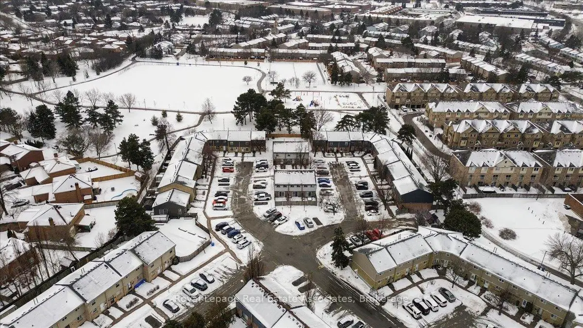 Welcome to one of the Best Values in Streetsville -LOWEST Maintenance Fees Include Rogers Ultimate HD Cable TV Unlimited Internet, Water, Windows, Roof+++ATTN: First Time Buyer's /Retiree's!! Beautifully renovated 3-Bedroom backing onto a Large Park w No Neighbours Behind. Enjoy a Private, Peaceful Backyard - perfect for summer BBQs, morning coffee, or unwinding while the kids play just beyond your fence. Fully Renovated in Nov 2025 -60K spent in thoughtful modern style throughout. Engineered Flooring on the Main Level, Waterproof Lam in the Foyer, Kitchen & Basement, Lam on the 2nd Floor, Pot Lights, California Shutters, & New LED Lighting create a warm, modern feel. Elegant Oak Stairs w/ Iron Pickets add timeless character. The Stunning Kitchen features Quartz Counter, Tile Bksplash, a Lrg Rectangular Undermount Sink beneath a Bright Window & an Open-Concept Layout flowing into the Spacious Living/Dining Area w/ WO to your Enclosed Patio Overlooking the Park - truly an extension of your living space. Upstairs offers 3 Generous Bedrooms; Primary w/Built-In Closet. The Spa-Inspired 4-Piece Bathroom is your personal retreat, complete w/ Glass Shower Doors, Chrome 8-Jet Body Spray & Rainfall/Waterfall Shower Panel, Deep Soaker Tub, Quartz Vanity, Marble-Look Tile, Defogging Mirror w/ Multi-Light Settings, & Spacious Linen Closet. The Finished Basement provides a Cozy Rec Room w/ Dry Bar, can convert to WET BAR, 2-Piece Washroom, and a Large Separate Laundry Room with potential for a Home Office or Additional Storage. Located in a Family & Retiree-Friendly Community w/ Direct Park Access to Tennis & Pickleball Courts, Baseball Diamond, and Credit River Trails (Culham Trail) - ideal for walking, biking, or evening strolls. Desirable Schools, Great Shopping & Restaurants Nearby. Transit 2-Min Walk. GO Stations 6-10 Min Drive. Well-Maintained Complex with Community Outdoor Pool & Party Room. More than a home - it's a lifestyle. 2 CARS no problem parking available!!*