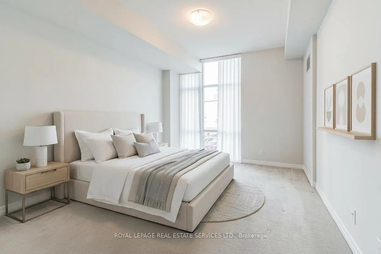 Step into refined living and comfort in this exquisite boutique condominium, The Regatta III, perfectly situated in the heart of Port Credit. This spacious north-east facing 1-bedroom plus den suite spans 700 square feet and combines modern comfort with timeless style. Inside, soaring 9-foot ceilings and expansive windows flood the open-concept layout with natural light, creating a bright and airy ambience. Rich hardwood floors flow throughout the living and dining areas, while the thoughtfully designed kitchen features wood cabinetry, included appliances, and generous counter space-ideal for everyday cooking or entertaining. The primary bedroom provides a peaceful retreat, while the versatile den adapts easily as a home office, reading nook, or guest room. Step out onto the private balcony to enjoy your morning coffee or relax at the end of the day while taking in the lively city views. Located just steps from Lake Ontario and the Waterfront Trail, outdoor recreation is always within reach. Trendy restaurants, boutique shops, and the charm of Port Credit Village are right outside your door. For commuters, the Port Credit GO Station offers quick access to downtown Toronto in under 30 minutes. Practical features include one owned underground parking space (P170) and a locker (Level B, Unit 114), providing convenience and storage. The building is professionally managed by FirstService Residential, ensuring excellent maintenance and peace of mind. Don't miss this opportunity to enjoy the perfect balance of waterfront serenity and urban accessibility in one of Port Credit's most coveted addresses.Note: Floor plan is not to scale.