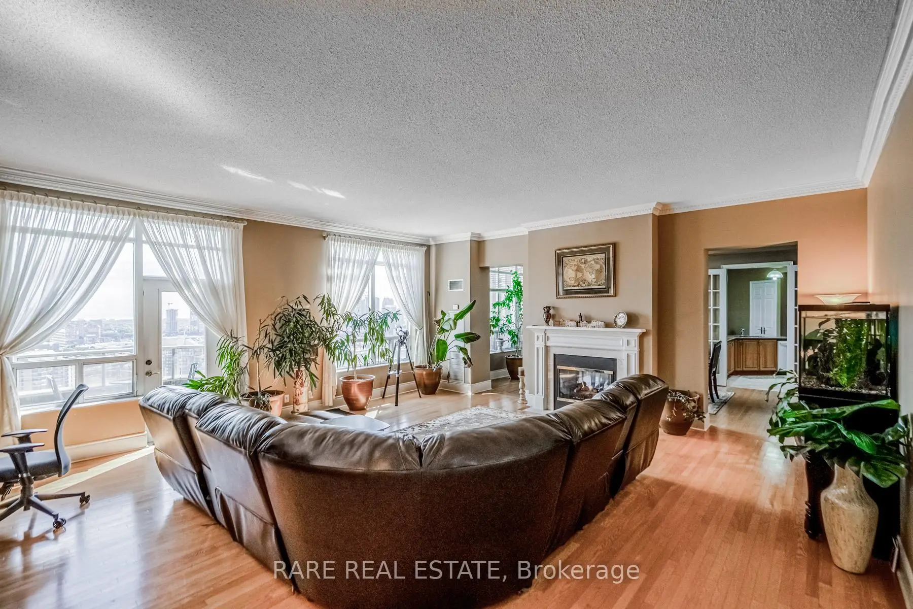 2,680 Sqft (249 Sqm) offering 3 bedrooms, 3 bathrooms, 10 ft ceilings throughout and 2 terraces facing South East giving clear, unobstructed views of the Toronto + Square One skylines and Lake Ontario. A functional, yet true trophy property, TPH6 (Terrace Penthouse 6) by Tridel offers many unique, luxury features. Natural gas BBQ connection on terrace, 2 indoor gas fireplaces (1 double sided in living/dining + 1 fireplace in family room). This unit is so large there are 2 entry doorways, a double door grand entrance into the foyer and a second single door access to the family room/kitchen and pantry. Hardwood flooring throughout most of the suite with 8 inch baseboards. Granite countertops, built-in appliances in Kitchen with pantry. Primary bedroom with 2 walk in closets and 6 pc ensuite with bidet. 2 parking spaces, one right by the elevator on P1 and the second can fit 2 cars located on P2. Central vacuum system with the laundry room large enough to serve as a locker. Access from almost every room to the outdoor space with large south facing windows for plenty of natural light. TPH6 is located on the 33rd floor giving it truly open views. The building offers multiple layers of security: controlled garage access, front desk security/concierge, controlled access to elevator lobby + suite floor. A grand lobby greets visitors and residents featuring stone finishes, 2 floor atrium style design with a water fountain centerpiece. This traditional luxury design carries throughout the building and TPH6. Expansive amenities include a bowling alley, gym, indoor pool, hot tub, party room, billiards room, outdoor terrace and more. Surrounding area offers shopping, public transit and easy commuter access across the GTA with close proximity to Pearson Airport.