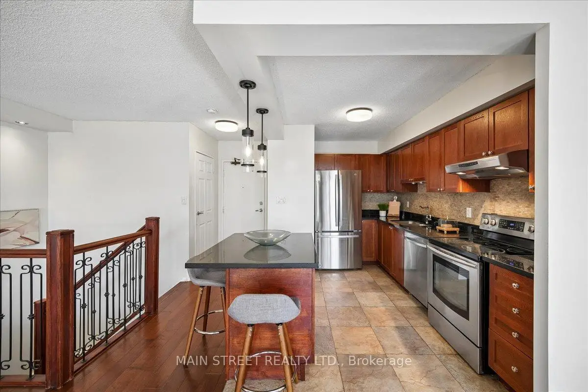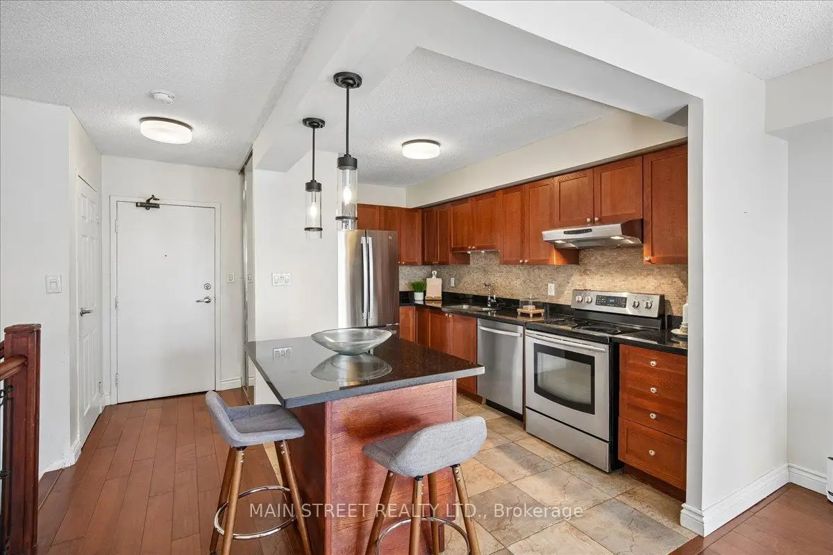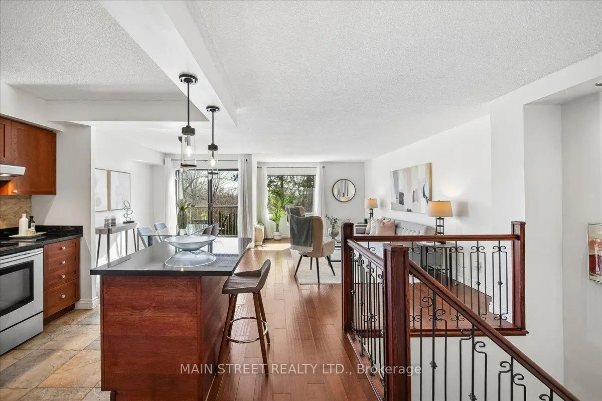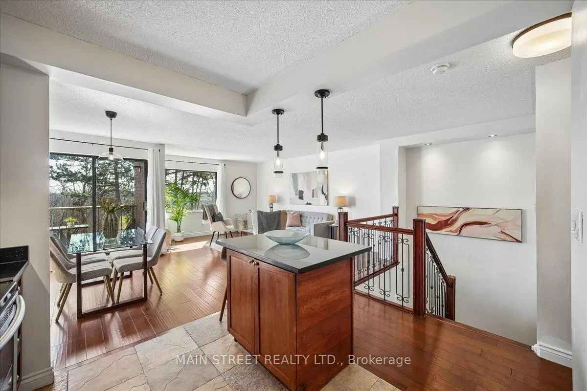 Step into this bright, upgraded two-level home offering 1,124 sq ft, 2 bedrooms, 2 bathrooms, and 2 owned underground parking spots. The main level showcases an open-concept kitchen with island and generous walk-in pantry/storage, a living room and dining area that opens to a private balcony ideal for morning coffee or evening entertaining. The lower level features a spacious primary suite with walk-in closet, convenient 2-pc ensuite and walk-out to a ground-level patio where BBQ is permitted, plus a second bedroom, full 4-pc bath, and in-unit laundry. Nestled steps from Huron Park and the Recreation Centre and close to University of Toronto Mississauga, golf courses, shopping, schools, hospital, Erindale GO and MiWay transit, this home blends suburban convenience with outdoor lifestyle. Water, internet & Bell Fibe TV included in maintenance fees.