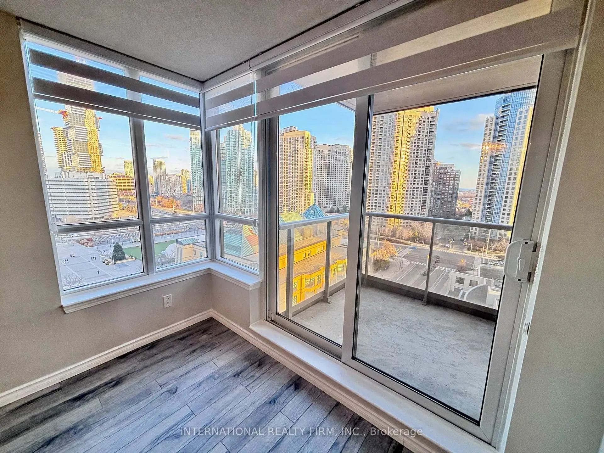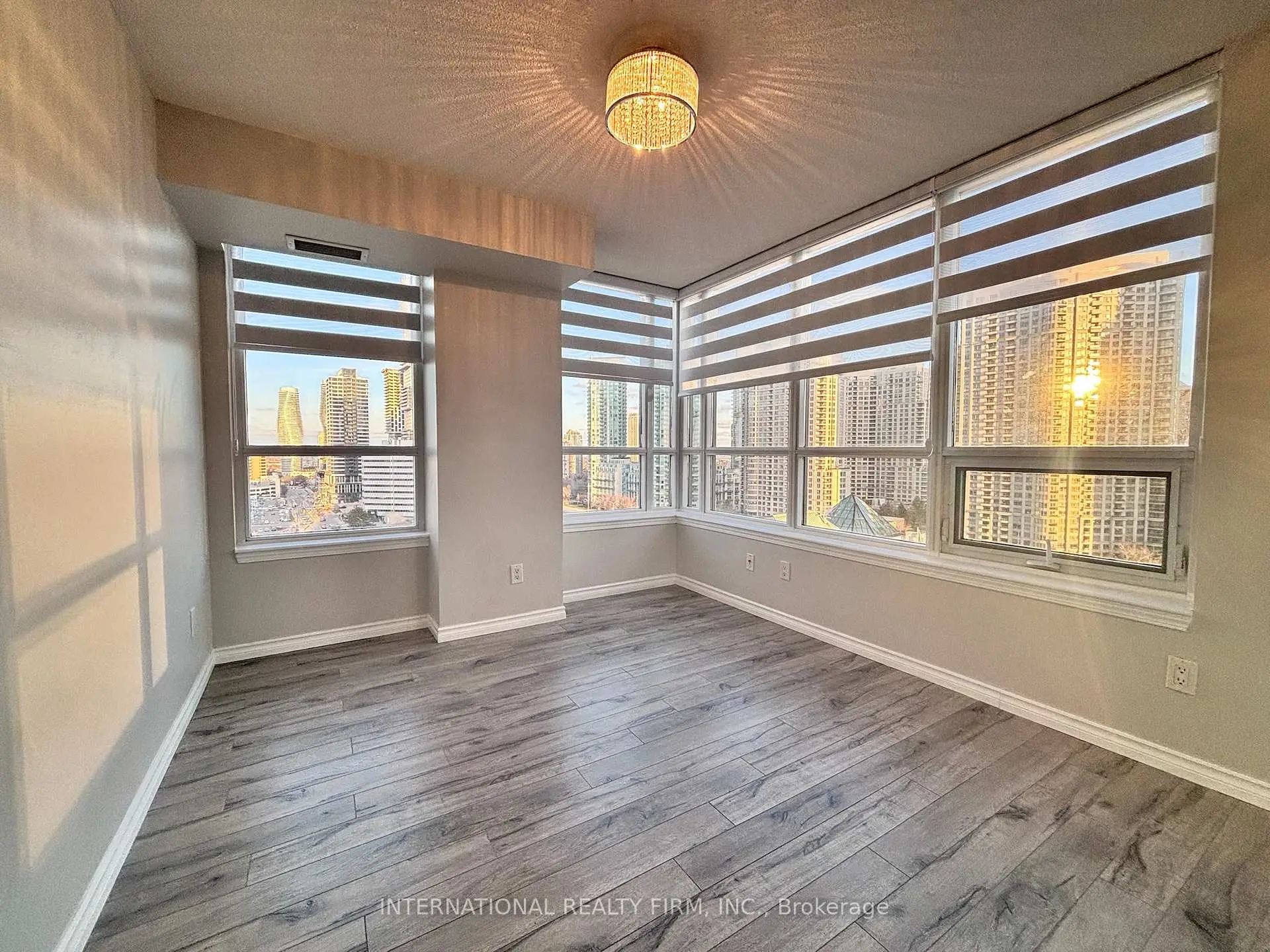 Stunning 2-Bed + Den Corner Unit, Sun-Drenched and Steps from Square One Mall. This meticulously maintained condo is ready for you to move in and start enjoying! The spacious Den, featuring wall-to-wall windows, offers endless possibilities: convert it into a third bedroom that easily accommodates a king-sized bed or transform it into a luxurious home office. As a corner unit, you'll enjoy added privacy with no shared balcony walls. The condo boasts brand-new custom-made zebra shades that filter light perfectly, newer laminate flooring throughout, upgraded crystal light fixtures, fresh paint, granite countertops, and stainless steel appliances. Breathtaking views of Celebration Square from the comfort of your living room make this space truly special. Plus, you're just steps away from shopping, Sheridan College, UTM Shuttle Bus, restaurants, Hwy 403,Go Transit, the bus terminal, and the YMCA. Top-tier building amenities include an indoor pool, fully-equipped gym, concierge service, and direct access to a 24-hour Rabba convenience store. This is a must-see property that combines convenience, luxury, and location!