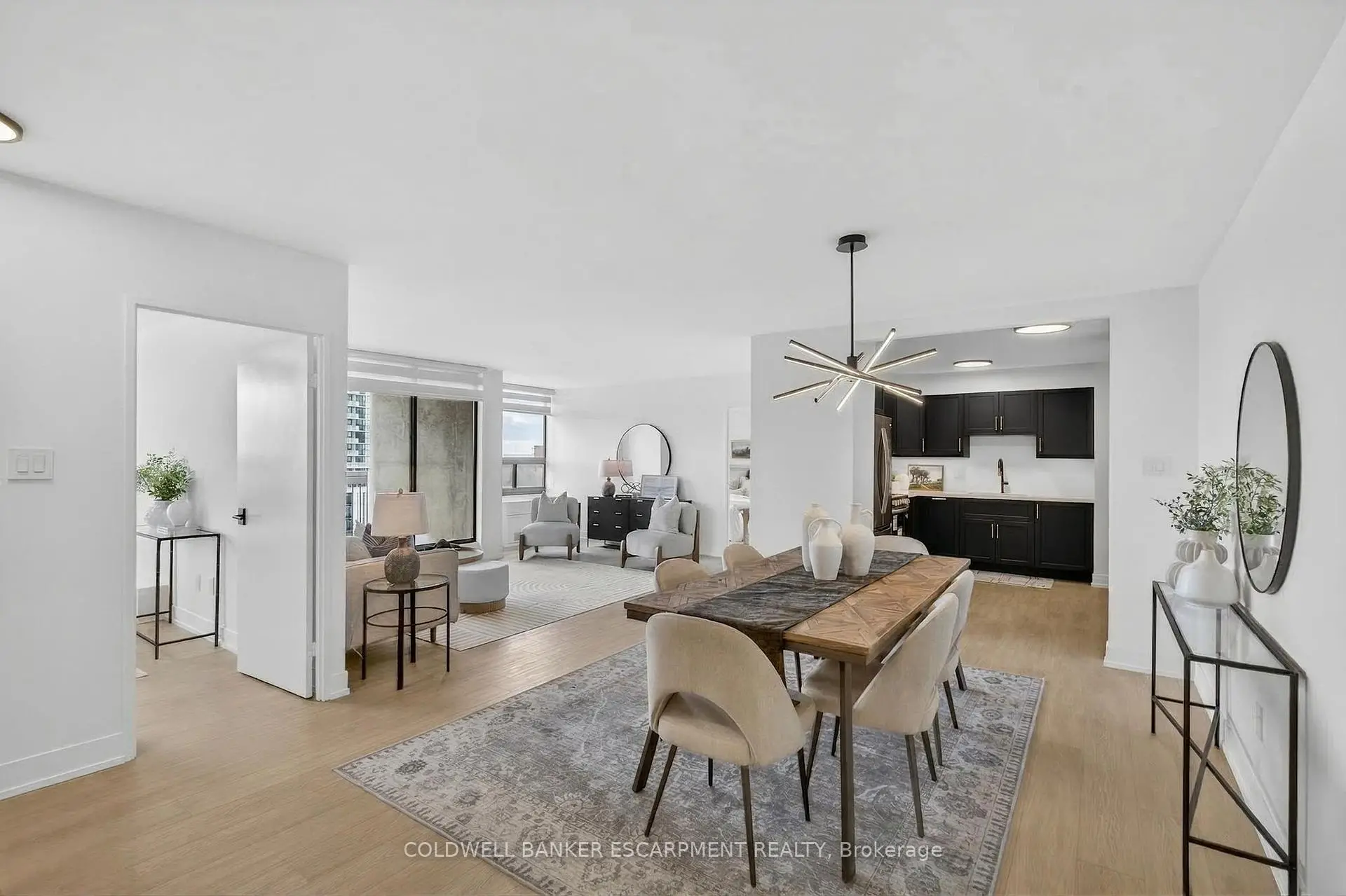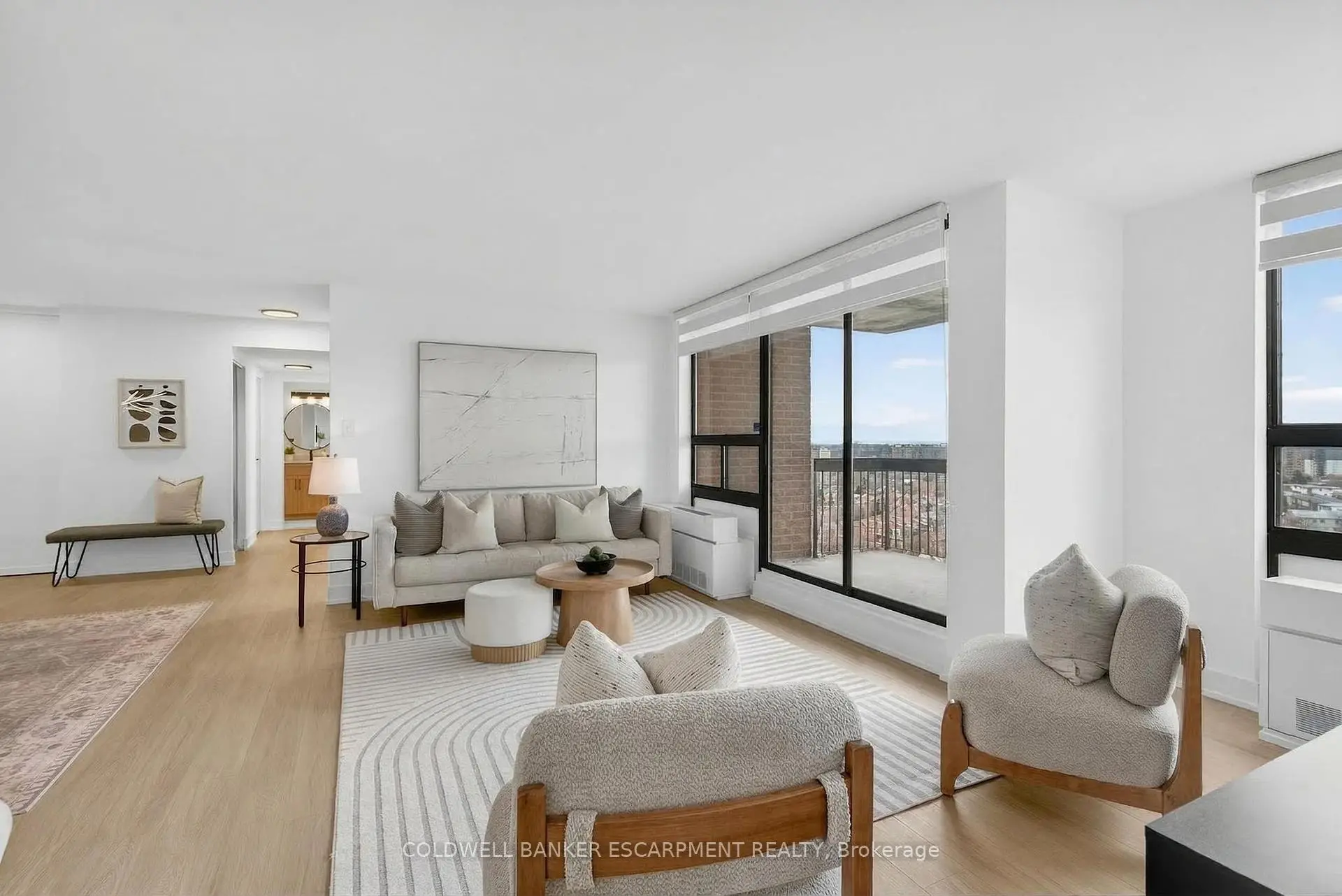Unobstructed South Facing views all the way to Lake Ontario! Lowest condo fees around for a unit this size! Completely transformed, 3 bedrooms plus a large storage room and two full washrooms. The old foyer was opened up to create a massive open concept living and dining space. Luxury Vinyl plank flooring throughout. Incredible kitchen with brand new high end stainless steel appliances (there is a dishwasher, it's hidden by a cabinet door!), including above the range slim microwave. French door fridge with hidden ice and water. A few of the large cabinet drawers have hidden slim drawers for your kitchen utensils. Undercabinet dimmable lighting, undermount sink with accessories (cutting board, foldable drying rack, strainer) and quartz countertops. Custom closet doors throughout. Large Master Bedroom is conveniently laid out on the other side of the unit from the other bedrooms, with two closets and 4 piece ensuite. Both washrooms have stone countertops, Rain shower heads with handheld sprayer and shower pot lights. Huge in-unit storage/locker room with added cabinetry. Brand new stacked washer and dryer. 5 mins to Square One. There is a plaza across the street anchored by Metro and only a short walk up to Hurontario for the new (hopefully) soon to be completed LRT. City Centre Transit Terminal is only 12 minutes by bus, where you can connect to MiWay and Zum Buses. Cooksville GO is a 4 minute drive away! Easy Highway access to 401 via the 403 which is very close by. Short drive south and you can hop onto the QEW. Condo amenities include indoor pool, well equipped gym, 2 pool tables, ping pong table, Party Room and Social Rooms available to rent. Pay only hydro on top of the low Condo fee.