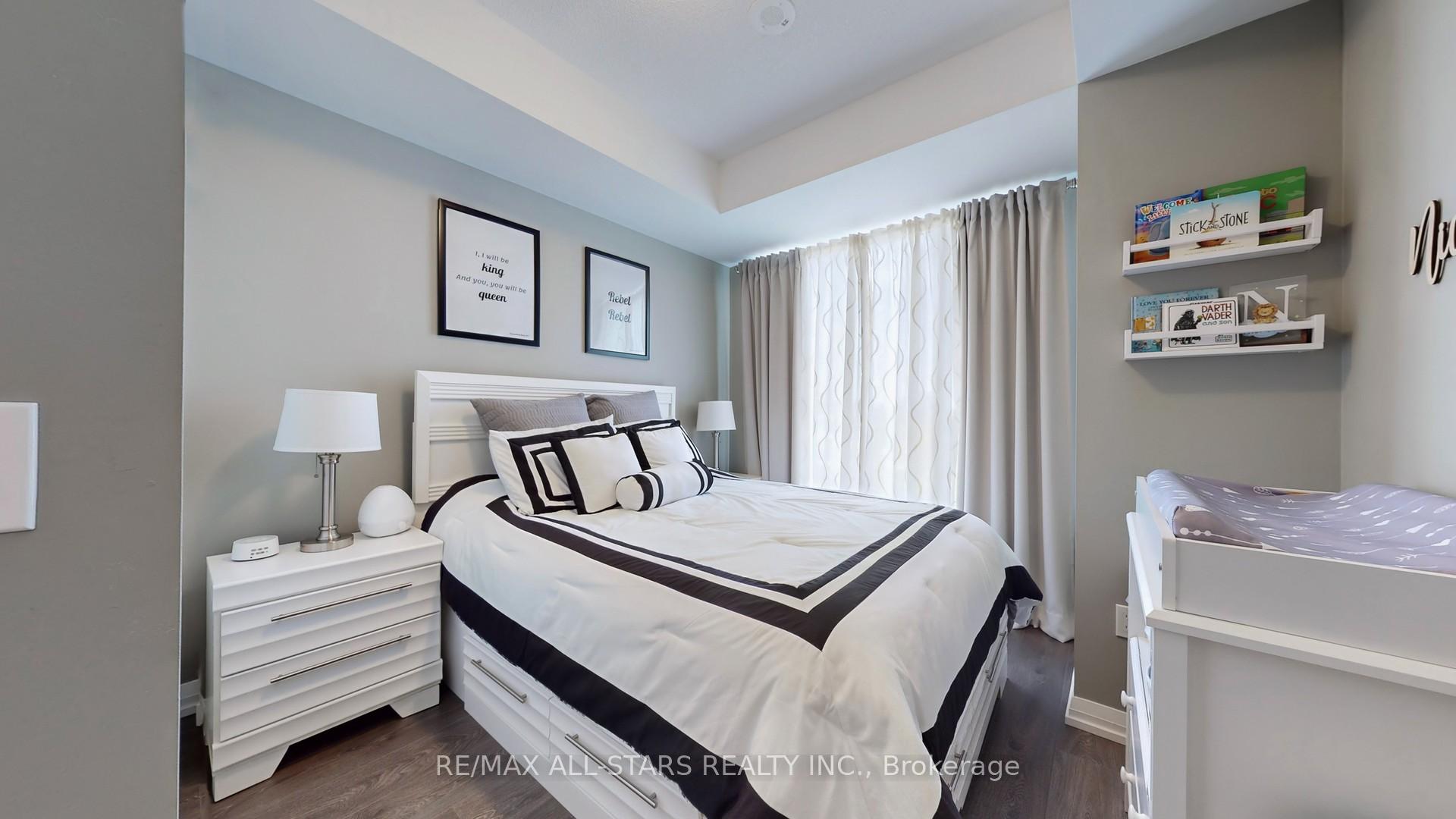 这个公寓有两个停车位内部为1个卧室+地穴,呈现出"模范套房","现代","实用","开放"等概念,有许多升级. 9英尺的天花板,薄膜地板出,花岗岩厨房柜台顶,陶瓷回弹,在厨房吃,厨房柜子升级。从起居室走到阳台. 4pc洗手间,镜像壁橱,dBL壁橱在主卧室,方便进入dVP和401,步行距离到费尔维尤商场和唐米尔斯地铁.包括方便进出电梯和连带停车。准备搬入。
