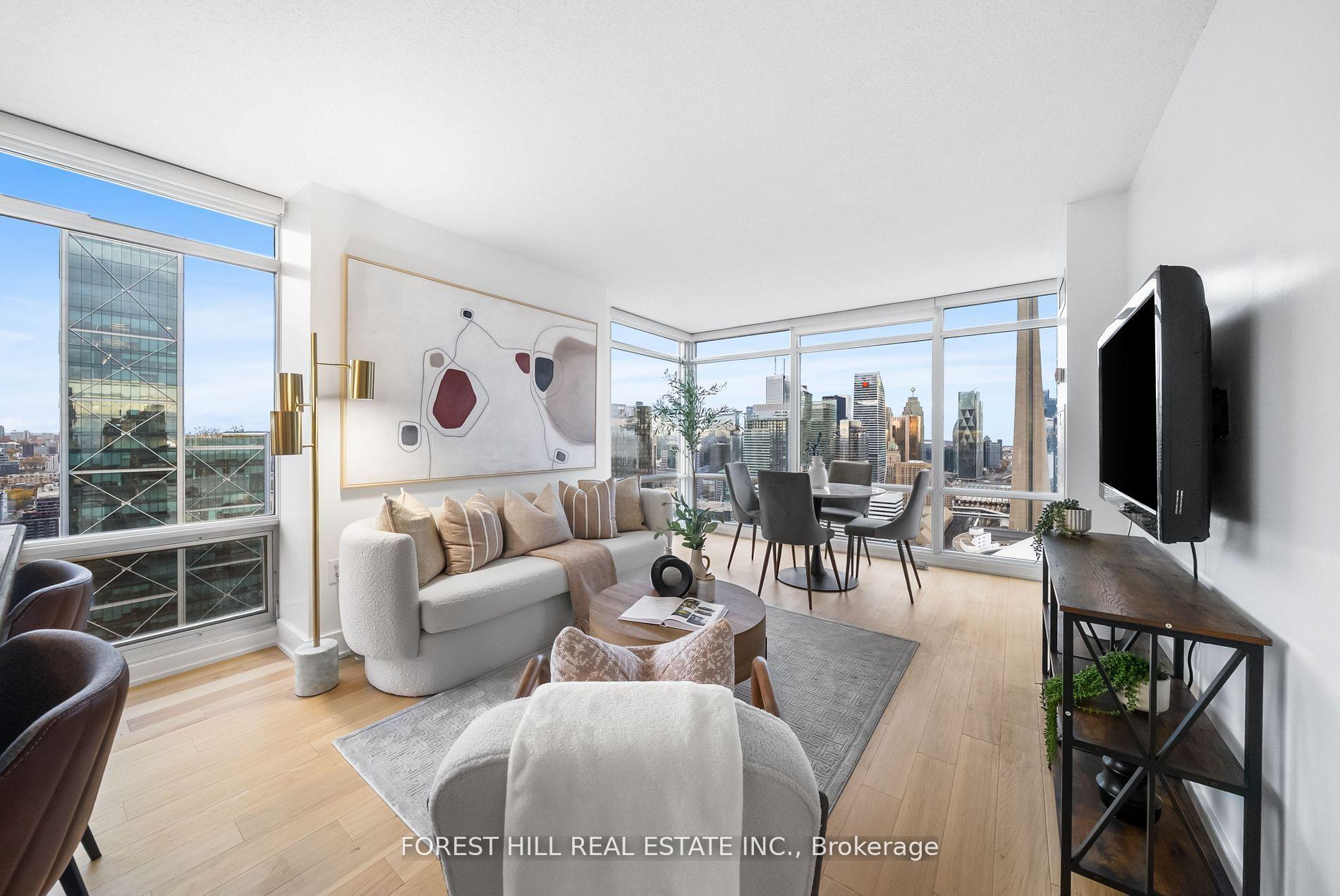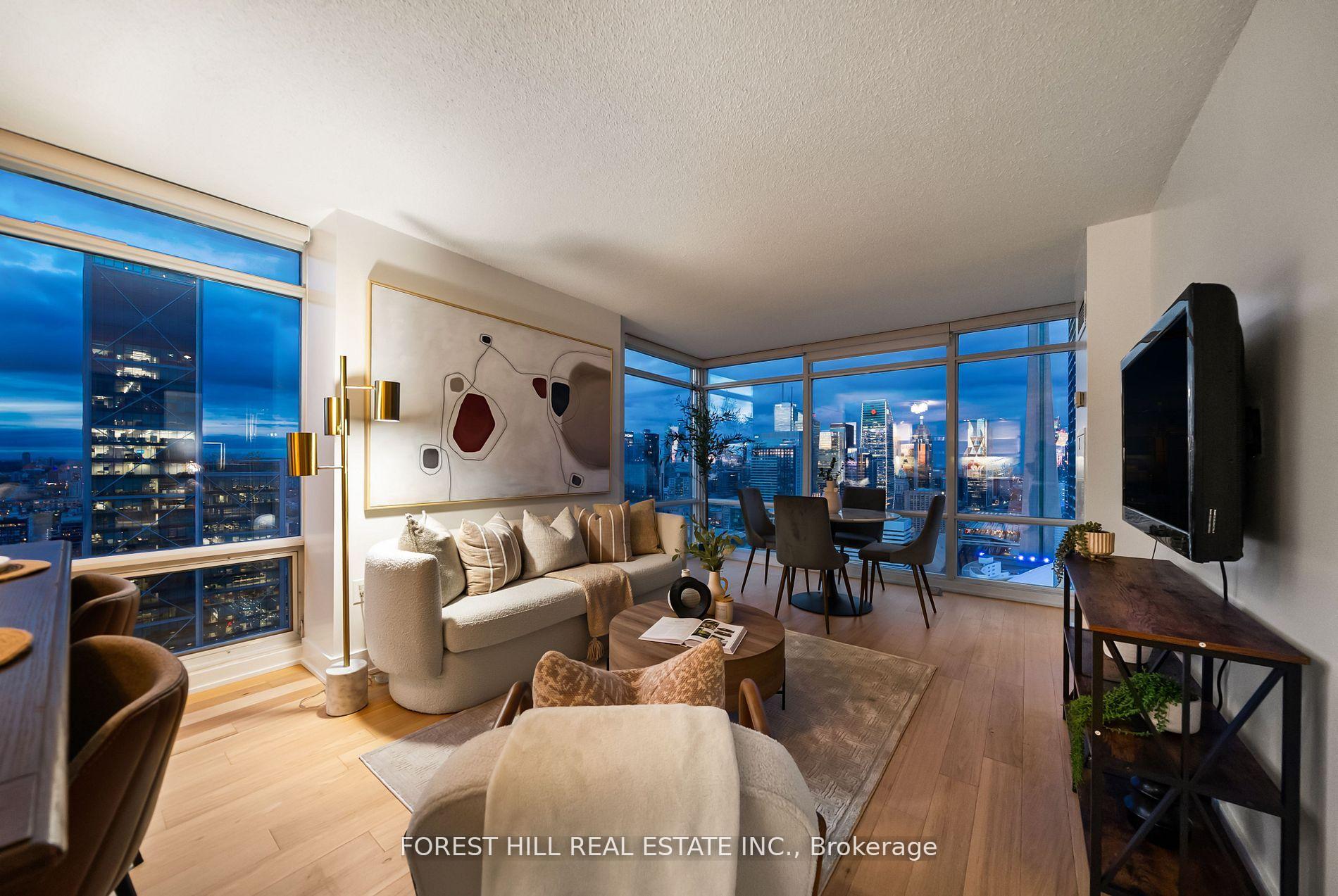 好东西在2'!醒来到永远的视图从这个罕见的2个床 2浴缸 2停车高管角套房在25Telegram Mews,套间 5002。这座被阳光晒透的住宅捕捉了CN塔、金融区和安大略湖的北上、东上和南下无阻的暴露这对于城市生活来说是一个真正的标志性背景设计出新设计的硬木地板、现代照明和新鲜油漆,宽敞的开放概念布局不费力地流动,为最终隐私设计了分房。花岗岩的厨房里有花岗岩柜台,一个功能性的岛屿,和昂贵的不锈钢电器,而私人阳台请您从日出到日出在天际线。在 Montage享受两个相邻停车点和度假胜地式的豪华生活,包括一个24小时的客房、室内游泳池、热浴缸、桑拿、瑜伽工作室、屋顶烧烤等等。这间套房非常精致