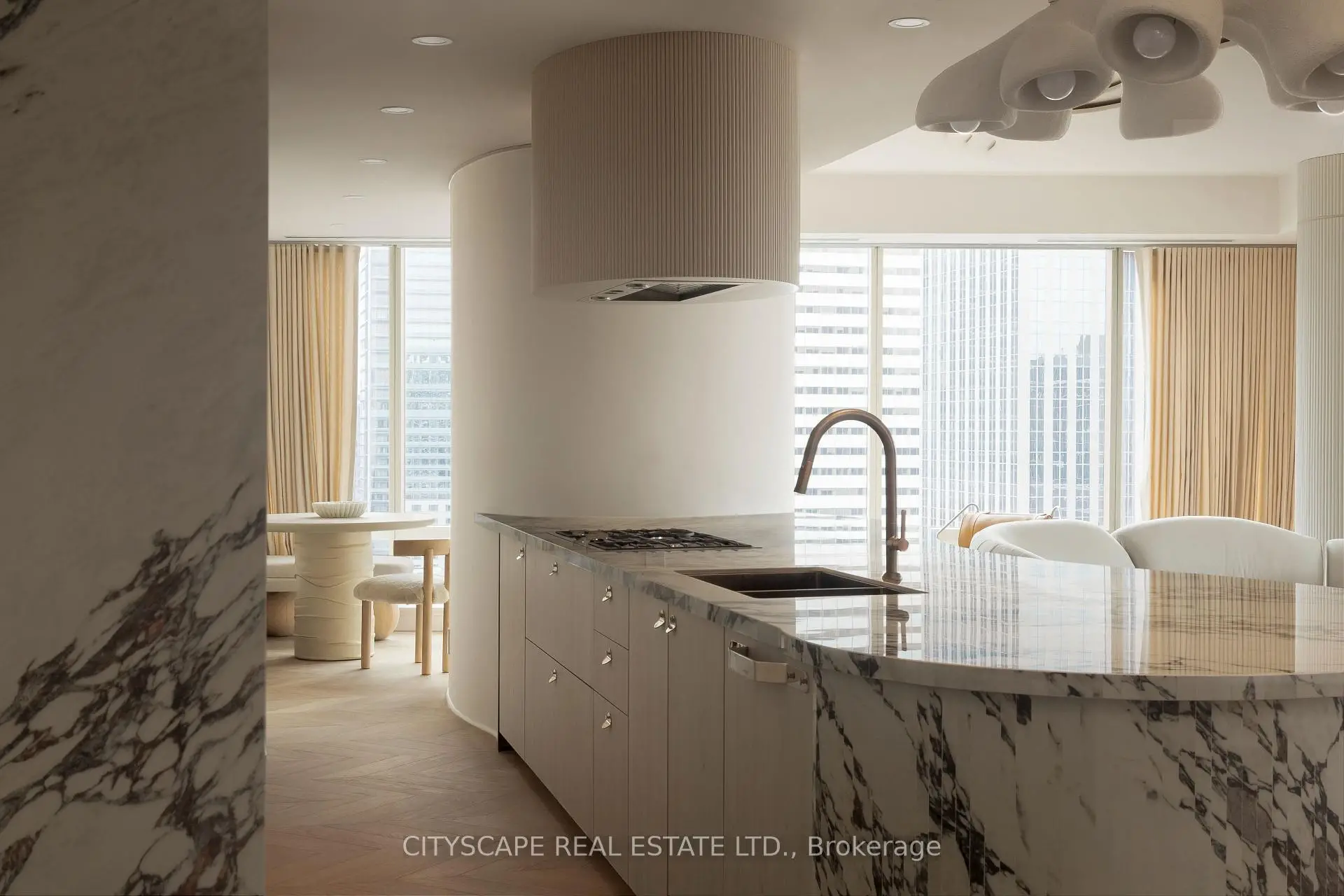 在著名的香格里-拉住所多伦多的真正独一无二的康多套房 1600平方英尺的宽度,这个完全被重新想象的住宅经历了一个完整的,由设计师主导的转变,每一个完成,固定,和建筑细节定制专门为这个套房。内饰由软雕形式所定义,流出曲线,拱形过渡,有声磨坊,并有宽平板的herringbone地板,形成了一种罕见的温暖感,很少在公寓居住中出现.昂贵的地上至地上窗框无碍地全景城市景色,同时将家用自然光照通天.住宅以意大利 Boffi 厨房为主,以戏剧性的大理石瀑布岛为主,每间卧室都提供一个静静地后退,并配有温泉启发后继浴室,而带有CN tower和城市视角的私人户外空间则会进一步提高生活体验.在多伦多最有标志性的地址之一拥有一个讲演建筑住宅的难得机会,提供精美的五星极好的生活