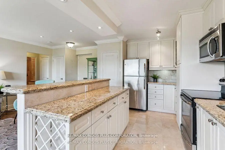 Value-Space-Location! Top Floor, 735 Sq. Ft. 1 Bdrm. SAVE W/$628.69 All inclusive monthly maint. & Taxes ,Not a Co-op -TD Financing Possible. Dining Room W/Sliding door W/O to Private 138 Sq Ft Balcony-only 3 one BR units have this size Balcony. Superb bright S/W Panoramic View on Quiet North York residential Street W/Multi million dollar Townhomes. This full Reno Total Custom Upgraded unit W/continuing updates to present HAS Large thermal windows-smooth ceilings-crown moldings-7in. baseboards. 2 Panel doors-Recessed lighting & tracks-Updated Electrical W/Extra Decora wall outlets & Dimmer Switches- High end finishes. 13 Ft Granite Counters. Kit w/4 SS Appliances-12 drawers-abundant storage upper Cabinets - spacious Base cabinets -Chrome Lazy Susan-Slat wood Wine rack. Large Breakfast bar, Travertine stone Backsplash & Flooring. Ready for Gourmet cooking & Sumptuous entertaining--before strolling to the private 31.8 ft Balcony Painted , Furnished & Updated W/Protective netting April 2025 to enjoy a beautiful evening view. Short walk to LRT. Bermondsey & Victoria Park stops, Minutes to all amenities in multiple Plazas & Bus to Downtown. East parking lot entrance has wheelchair accessibility, easy access to lockers, furniture moving and in and out & deliveries. Note low ALL inclusive means Heat ,Hydro, Water, A/C, Parking, Locker & Property Taxes. Do not miss out on this markets amazing opportunity. NOT A CO OP, NO SHARES.NO BOARD APPROVAL Call re TD Financing.