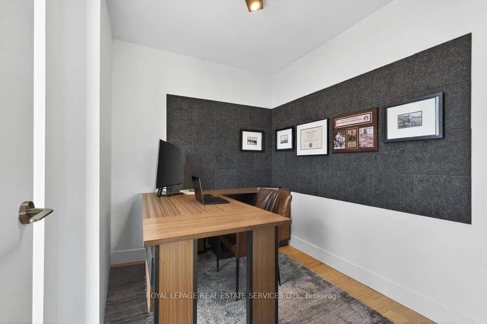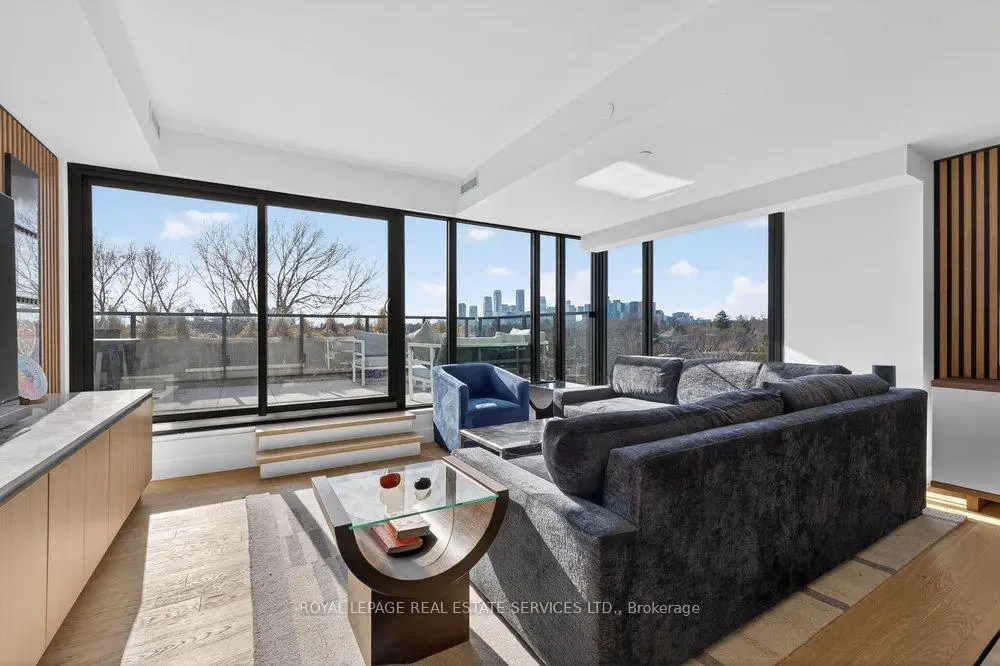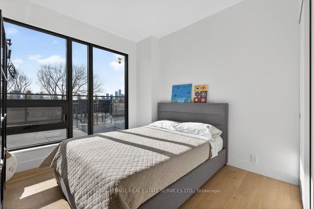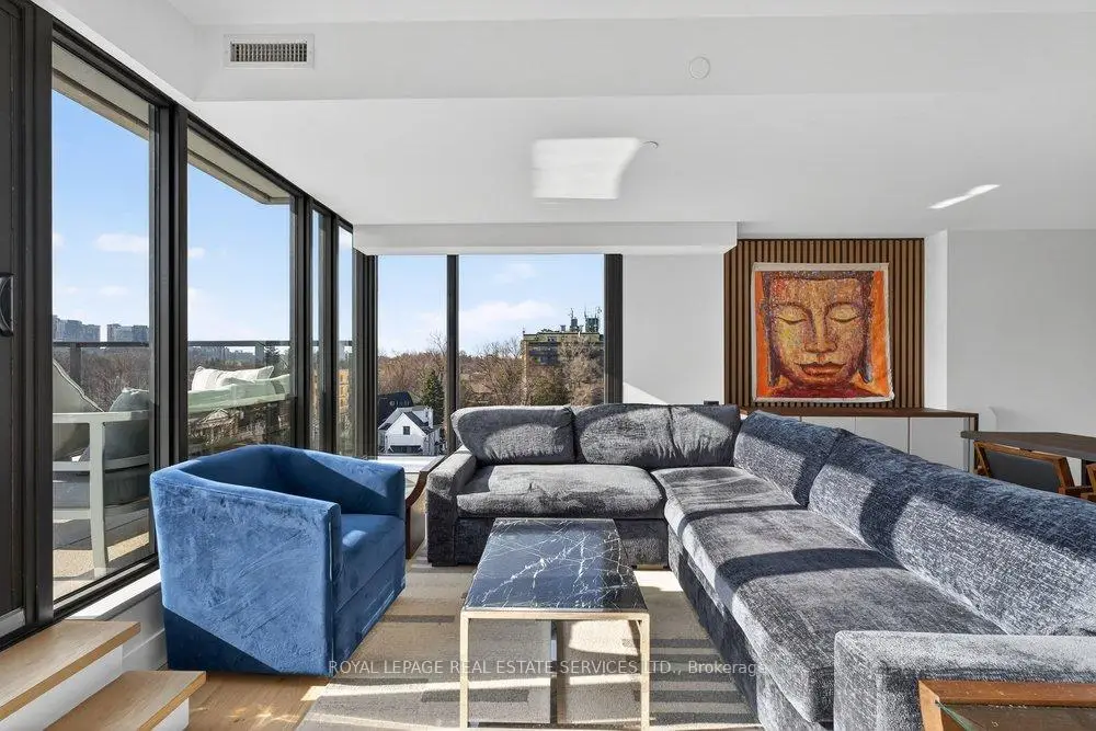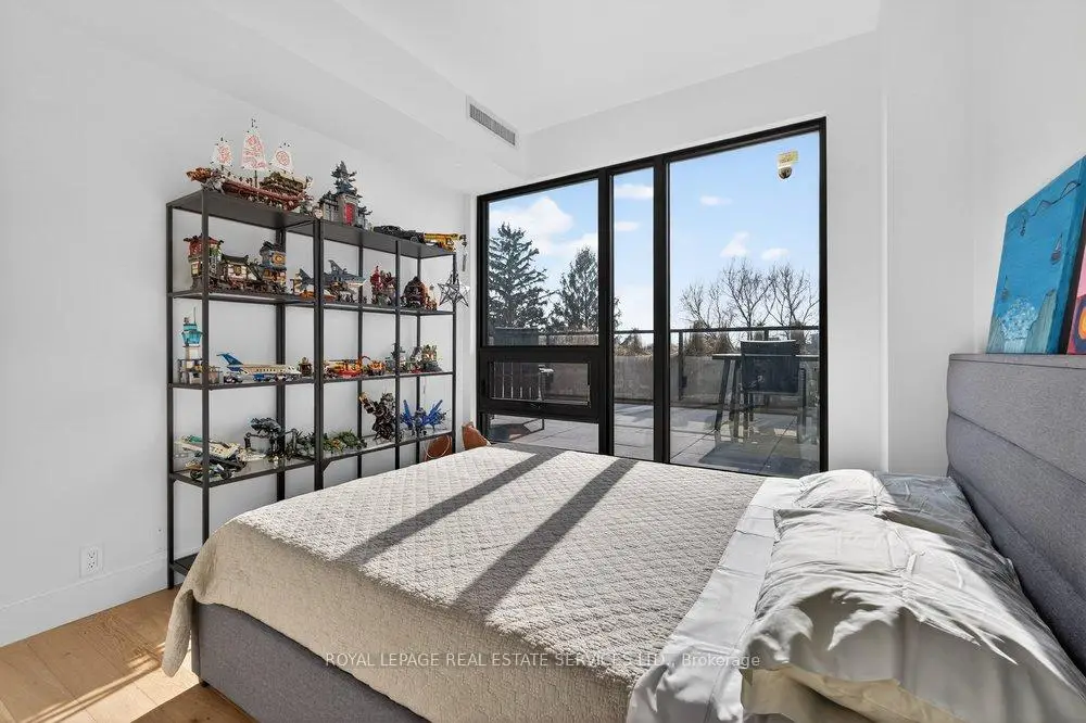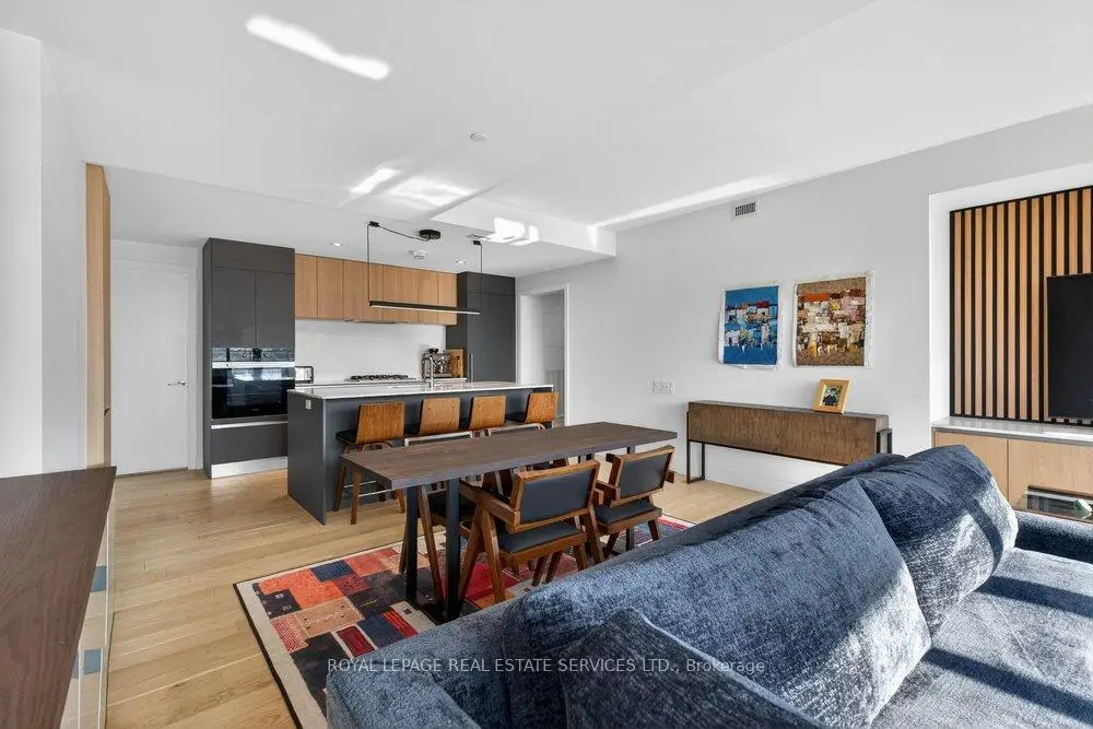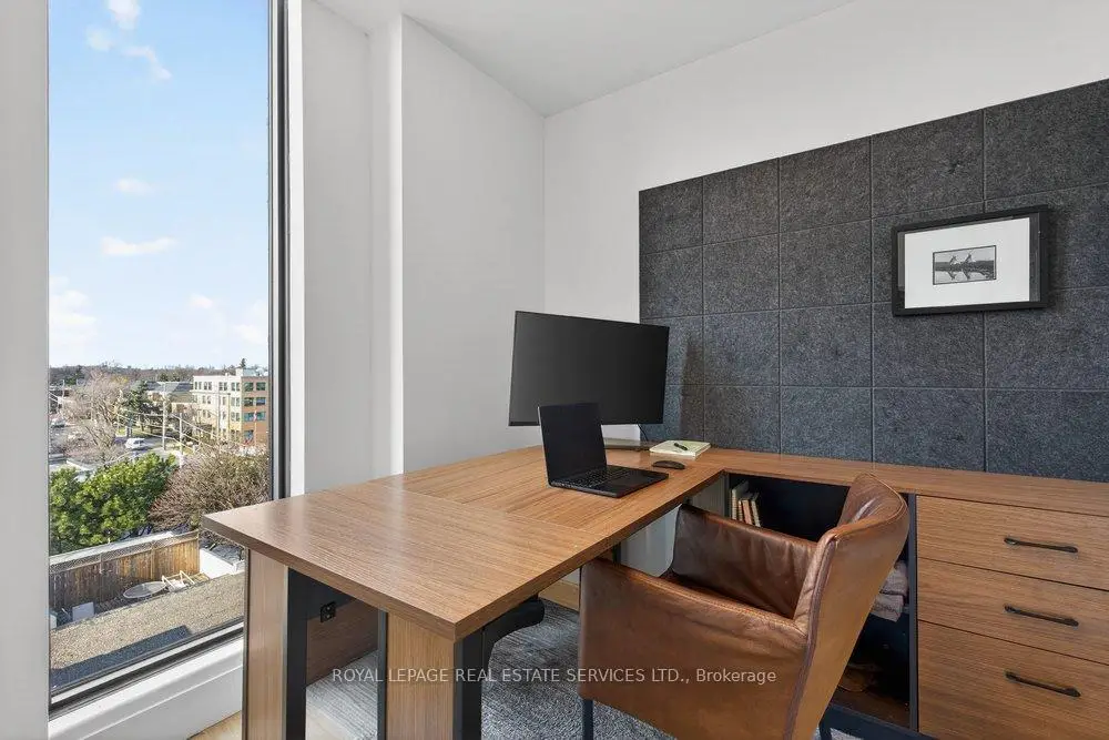 Experience the pinnacle of refined urban living in this meticulously crafted two-bedroom plus-den, two-bathroom residence at 1414 Bayview Avenue. Situated on the fifth floor of an exclusive boutique building, Suite 502 blends modern sophistication with timeless elegance. Spanning 1,345 square feet, the thoughtfully designed layout offers both comfort and privacy, complemented by a versatile den ideal for a home office ornursery. The open-concept living and dining areas are bathed in natural light through wall-to-wall, south west-facing windows, enhanced by soaring ceilings and rich hardwood floors throughout .Both bedrooms enjoy tranquil west-facing vistas. The primary suite impresses with a custom walk-in closet and a spa-inspired en-suite featuring a floating double vanity, recessed lighting and walk-in rainfall shower. The second bedroom offers generous closet space, while a-sleek three-piece bath with floating vanity and walk-in shower sits conveniently off the entryway. A dedicated laundry room adds everyday functionality.This exceptional residence includes one parking space and a large storage locker. 1414 Bayview Avenue is a boutique building with just 44 luxury suites, celebrated for it's elegant design, intelligent layouts, and premium finishes.