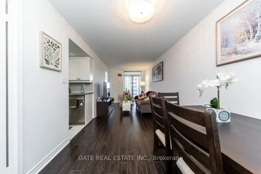 Discover stylish city living in the highly sought-after New York Towers by Daniels community in vibrant Bayview Village. Ideally located directly across from Bayview Village Shopping Centre and within a short walk to the Bayview Subway Station, this prime address offers outstanding everyday convenience. This bright 1-bedroom plus enclosed den suite features an open-concept living and dining area, complemented by a contemporary kitchen with granite countertops and stainless steel appliances. Laminate flooring flows seamlessly throughout the unit, enhancing its clean and modern feel. The primary bedroom includes a private ensuite, while the fully enclosed den offers exceptional versatility with its own closet-perfect as a second bedroom, home office, or guest space to suit today's evolving lifestyle. Additional highlights include a full-size washer and dryer, two full bathrooms, and a private balcony ideal for enjoying sweeping city views, and the added advantage of utilities included (heat, hydro, and water), providing true worry-free living with no extra monthly utility costs. Well maintained and move-in ready, this home is an excellent opportunity for first-time buyers, investors, or downsizers seeking comfort and connectivity. Residents enjoy access to an impressive range of amenities, including a fully equipped fitness centre, indoor pool, sauna, party and entertainment spaces, outdoor BBQ areas, and ample visitor parking. Surrounded by parks, community services, and key conveniences such as North York General Hospital, with quick access to Highways 401 and 404, this location offers a well-balanced lifestyle in an established North York neighbourhood.