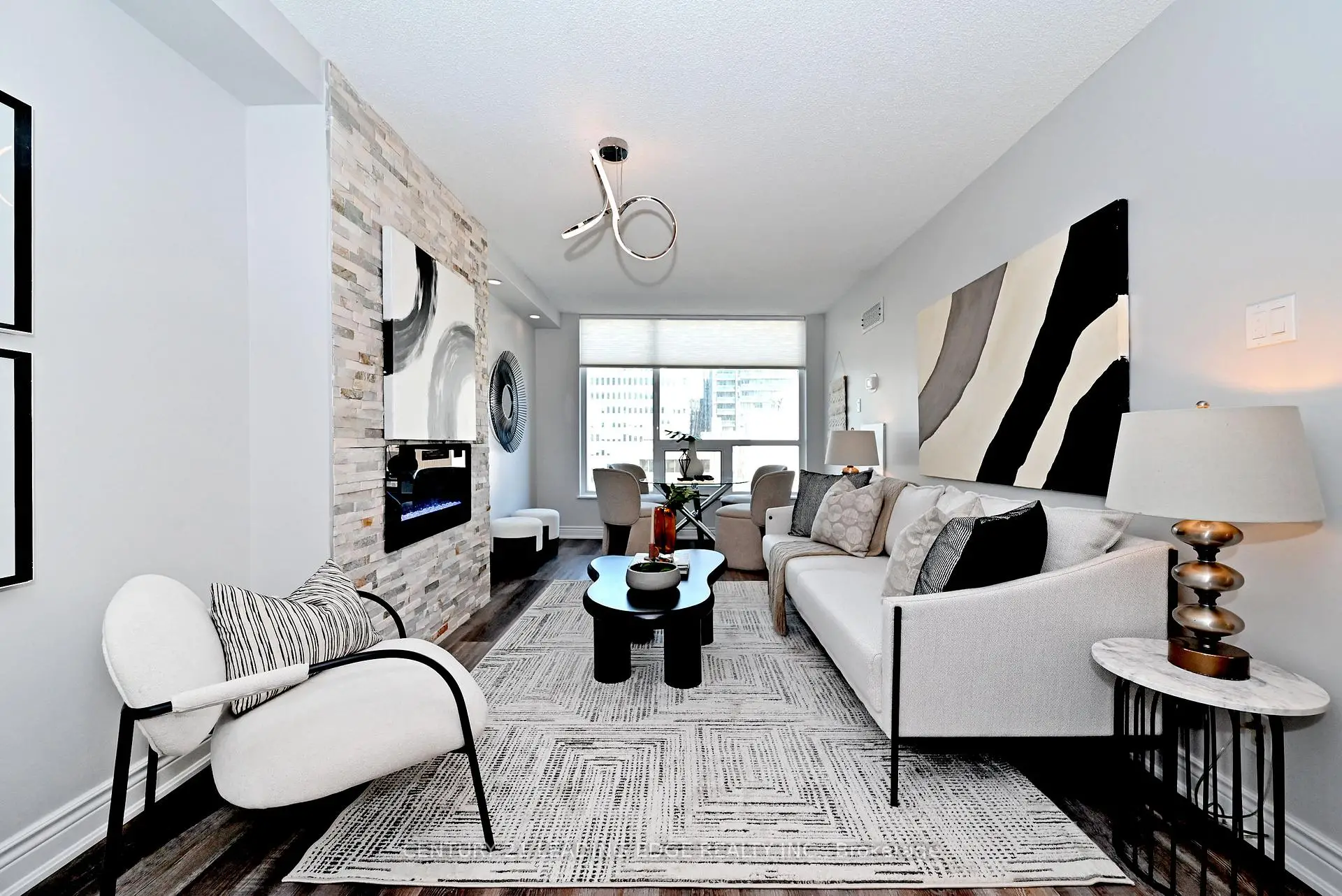 Welcome To This Beautiful And Spacious 2 Bedroom / 2 Bath Condo At The Highly Coveted King Plaza. This Fully Upgraded Unit Features An Elegant, Open Concept Layout W/ Premium Laminate Flooring Throughout. The Bright Combined Living / Dining Area Is Accented W/ A Gorgeous Veneer Stone Wall & Electric Fireplace. .................... Tons of Modern, High Quality Touches Throughout, Including Fresh Designer Paint & Premium Light Fixtures. Featuring A Modern Gourmet Kitchen W/Custom Cabinetry & Backsplash, Premium Stainless Appliances, Including An Induction Stove, Bosch Dishwasher & Large Fridge, Quartz Counters, Breakfast & Coffee Bar. The Spacious Primary Bedroom Features A Sunny Solarium That Can Function As An Office Space, & Comes Complete W/ A 4-Piece Luxury Ensuite & Large Closet. The 2nd Bedroom Is Designed W/ Sophisticated Functionality, W Sleek Built-In Custom Cabinetry And A Murphy Bed, W/ An Adjacent Upgraded 4 Piece Bath. Full Size Washer/Dryer. This Fully Renovated Unit, Offering You A Perfect Downtown Oasis, Comes Complete W/1 Underground Parking Space & 1 Locker For Extra Storage. ...................... The Well-Managed Building Offers Fabulous Amenities, Including 24 HR Concierge, Gym, A Gorgeous BBQ Terrace Overlooking St. James Cathedral, Bike Storage, & Visitor Parking .................. Don't Miss This Luxury Suite Conveniently Nestled Between Toronto's Vibrant Financial District & The Scenic St. Lawrence Market. Boasting A Top Walk Score of 100, Just Moments Away From All The Amenities You Need. Street Car At Door Step. Walk to King Subway Station, St. Lawrence Market, Parks, Daycare, Cafes, Restaurants, Eaton Centre, Union Station, The Path, Toronto's Top Attractions & More! Quick Access To The Gardiner Expressway & DVP. Your Trendy, Ideal Lifestyle Awaits!