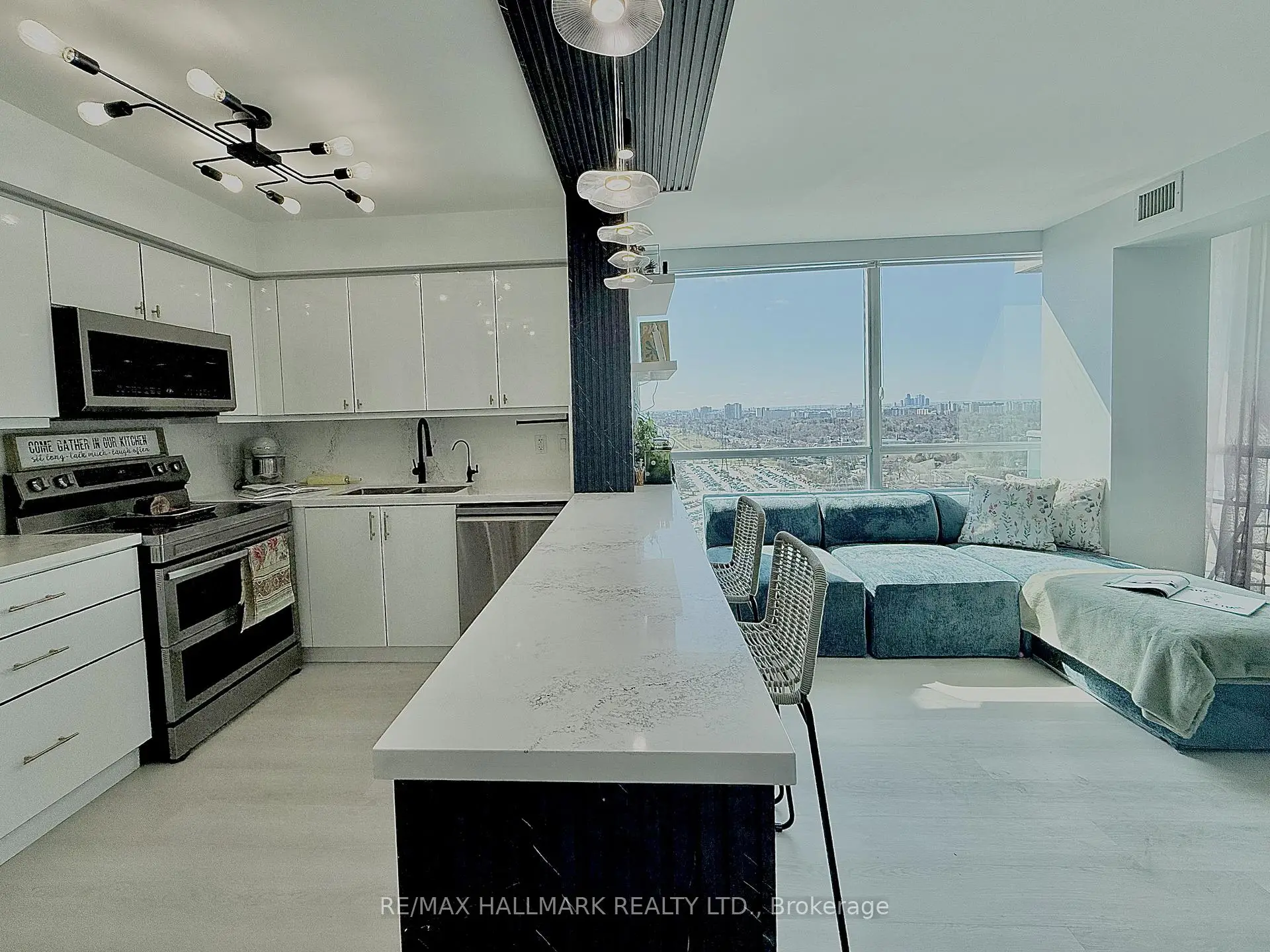 Welcome to this stunning, sun-drenched South West facing Condo suite in the Heart of North York. Absolutely fully reno'ed from top to bottom, every square inch of this home was done to the 10ths, spent over $60K in reno budget. This home features new light laminate floors, bright custom lighting throughout, artsy focal point wall as one of the highlight of this home along with a large mirror around the hallway area great feature to maximize projection on the space. Oh ohhh.. the Living/Dining/ Kitchen kept the home cozy and inviting, there are many different mood lights throughout the space, it is best to experience it at night. The Kitchen itself is an absolute must to spend time cooking like a chef, bright and airy, white cabinetry with a stone countertop and backsplash, a custom built in Island/ Eating space anchored by a custom floating light fixtures enhances the ambiance of it all, extra shelves and coffee/bar area, newer stainless steel appliances, high end washer and dryer combo and so much more. The Primary Bedroom has tremendous upgrades includes all built in Custom closet organizers, spa like master bathroom with rain shower and a two thousand dollar Japanese toilet with heated and water massage seat, auto clean functionality and so much more. The second bedroom is an absolute delight drench with all natural lights and built in closet organizers. This home is an extension of the home owners personality full of life and happy experiences and you can truly make this space so uniquely top not in every square inch of this home for the new well deserving homeowner today.Step out onto your private two balconies and unwind with a glass of wine while enjoying breathtaking sunset views and your gardening needs. Steps to TTC, GO Station, and the YRT bus terminal (only 200 meters away), with quick access to Highways 401, 404, 407, and Hwy 7. If you are a serious about finding the perfect home for you at Yonge and Finch corridor... This is a must-see!
