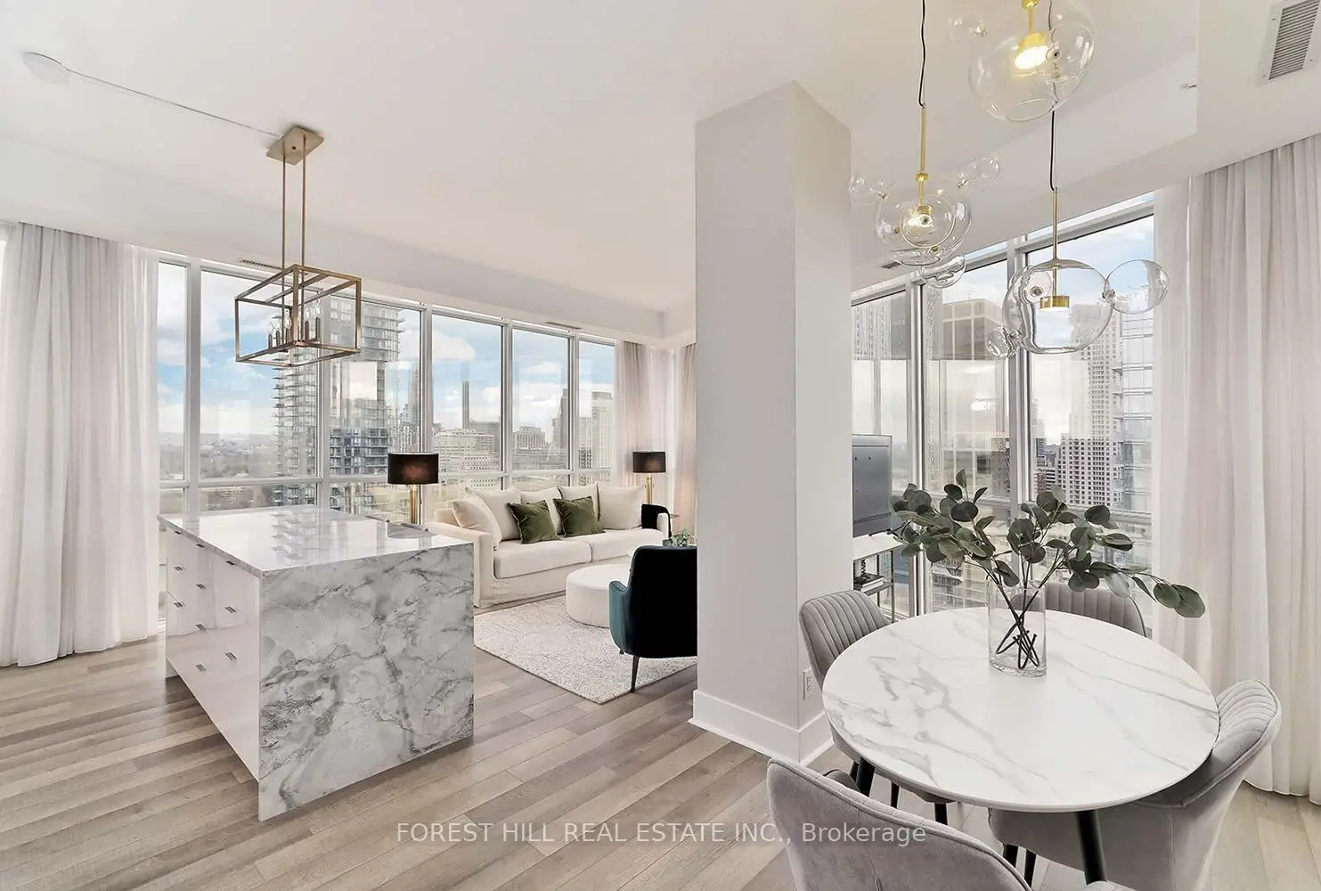 Welcome to "The Yorkville" condos, where luxury living meets one of Toronto's most vibrant and sought-after neighbourhoods. Surrounded by world-class dining, upscale shopping, renowned museums, and endless entertainment, this location truly offers the best of city living. This stunning suite features breathtaking panoramic views with 10-foot floor-to-ceiling windows, allowing you to enjoy both sunrise mornings with your coffee and spectacular sunset evenings. The sleek, modern kitchen is designed for both style and function, complete with full-sized appliances, a generous quartz centre island, and a separate dining area-perfect for entertaining. The primary bedroom offers a five-piece ensuite and walk-in closet. A well-appointed second bedroom and an additional three-piece bath provide comfort and convenience for family or guests. The bright, east-facing den is generously sized-ideal as a home office, additional living space, or easily converted into a third bedroom. Residents enjoy access to premium amenities, including a rooftop terrace, party room, fully equipped fitness centre, steam room, plunge pool, wine tasting room, visitor parking, and 24-hour concierge service. This unit also includes two prime side-by-side parking spaces located right by the elevator lobby, along with an extra-high garage entrance that accommodates even the largest SUVs or trucks. With an exceptional walkability score, you're just a short stroll to Yorkville, Summerhill, and the Annex, and only minutes from Yonge & Bloor subway stations, providing seamless access to both Line 1 and Line 2.Impeccably maintained and showing beautifully, this home offers stunning views and true pride of ownership.