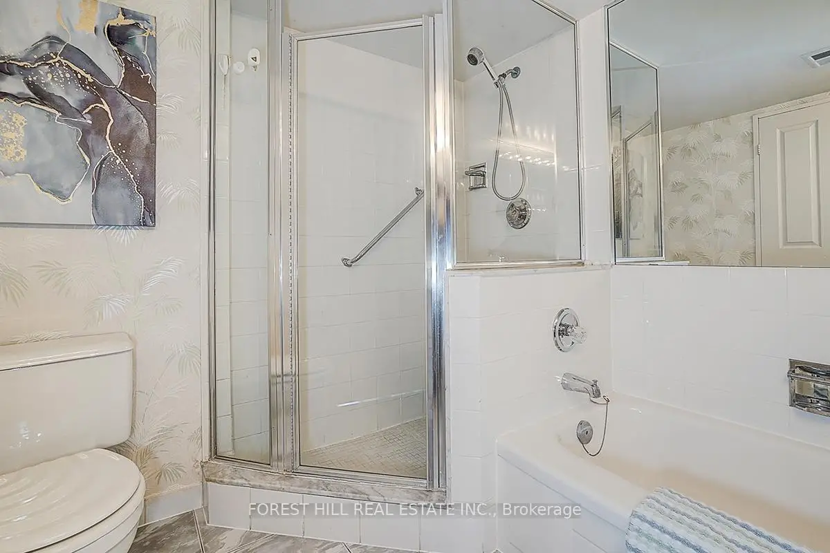 **Luxury Primrose Condominiums - Spacious & Bright Penthouse Living** Welcome to this stunning 2-bedroom, 2-bathroom Penthouse offering approximately 1,400 sq ft of beautifully designed living space in the highly sought-after *Primrose Condominiums*. This sun-filled suite features **expansive living and dining areas**, perfect for entertaining, with a walk-out to a private balcony. The **spacious upgraded kitchen** includes a large breakfast area-easily convertible into a Solarium as per the original floor plan. The **generous primary bedroom** offers double closets and a private 4-pc ensuite bathroom. A well-sized **2nd bedroom** provides excellent flexibility-ideal as a bedroom, guest room, or home office. Enjoy the convenience of **2 tandem underground parking spaces and 1 locker**, along with access to **beautifully maintained grounds**. Unbeatable Location! Steps to Bathurst & Steeles plazas. Easy access to public transit. Direct bus routes to Finch Subway and Steeles West Subway. Exceptional Building Amenities Include: 24-hour Gatehouse security, Outdoor pool, Gazebo & Tennis courts, Exercise room, Squash/racquetball court, Indoor Whirlpool & Saunas, Library/billiards room, Party & conference room, Upgraded lobby & elevators ** All-Inclusive Maintenance Fees: ** Heat, Hydro, Water, Central air, Cable, and Internet are all included for worry-free living. **Vacant and move-in ready**