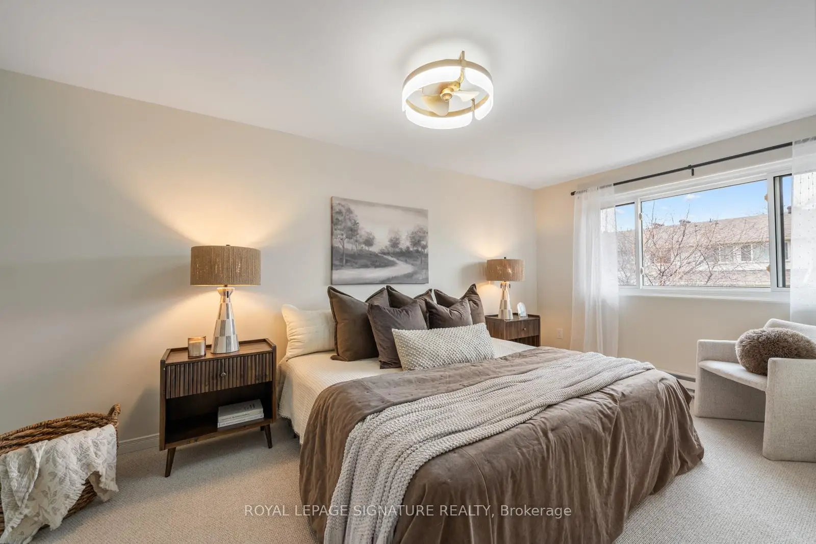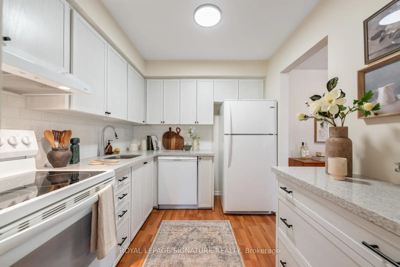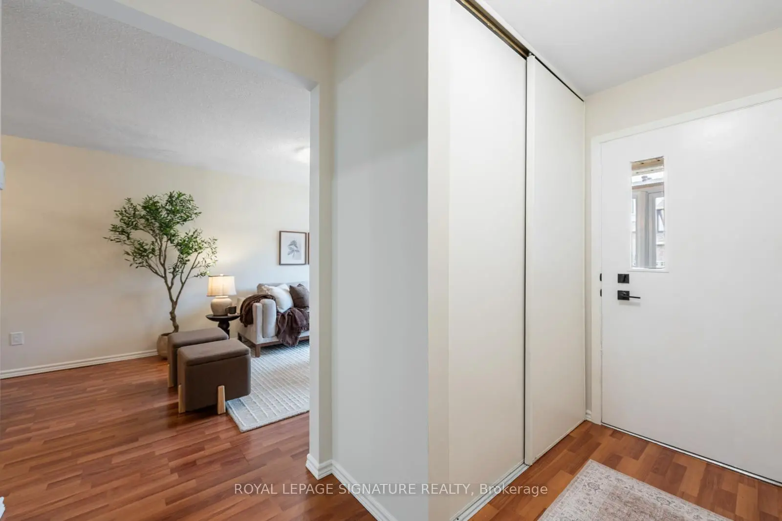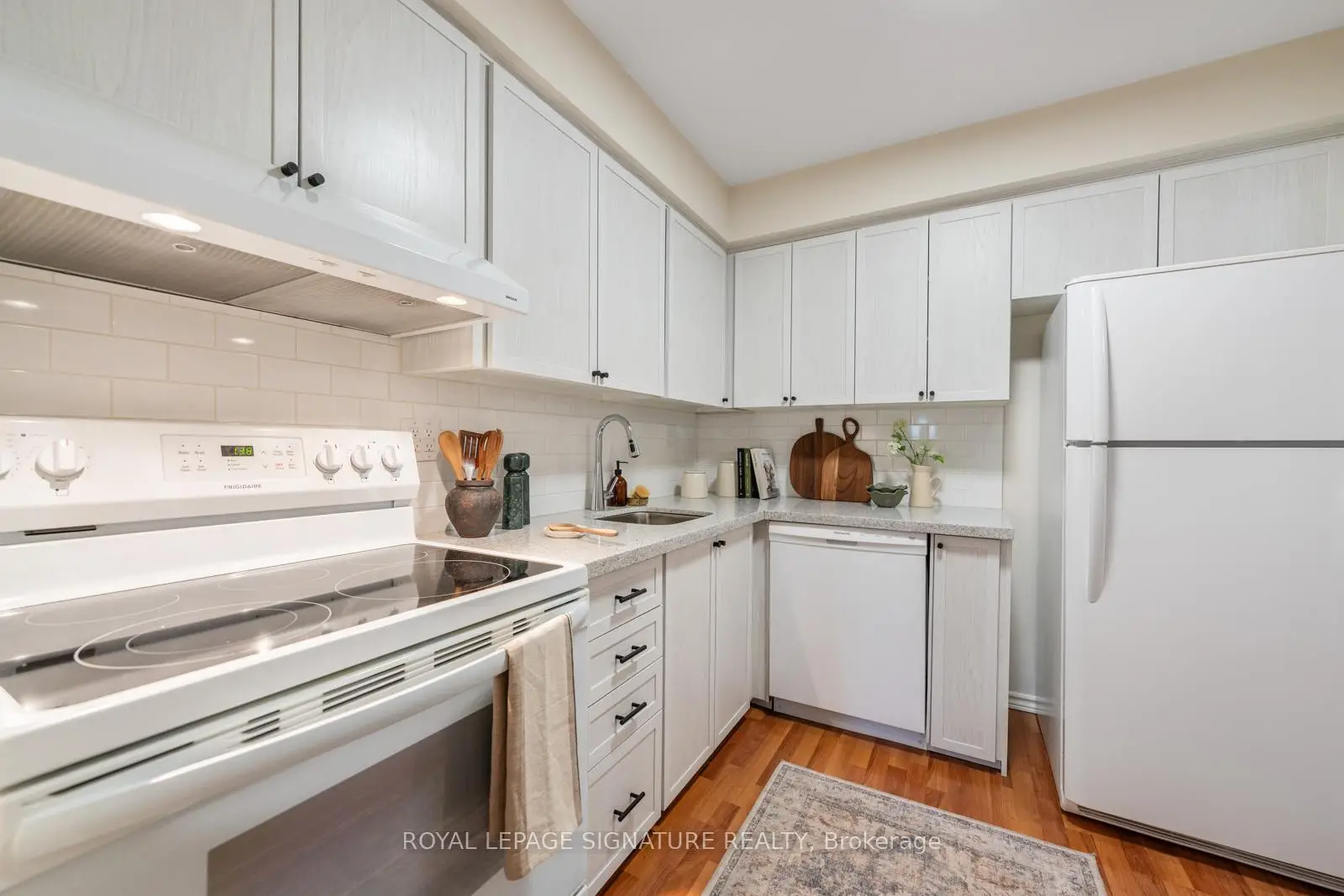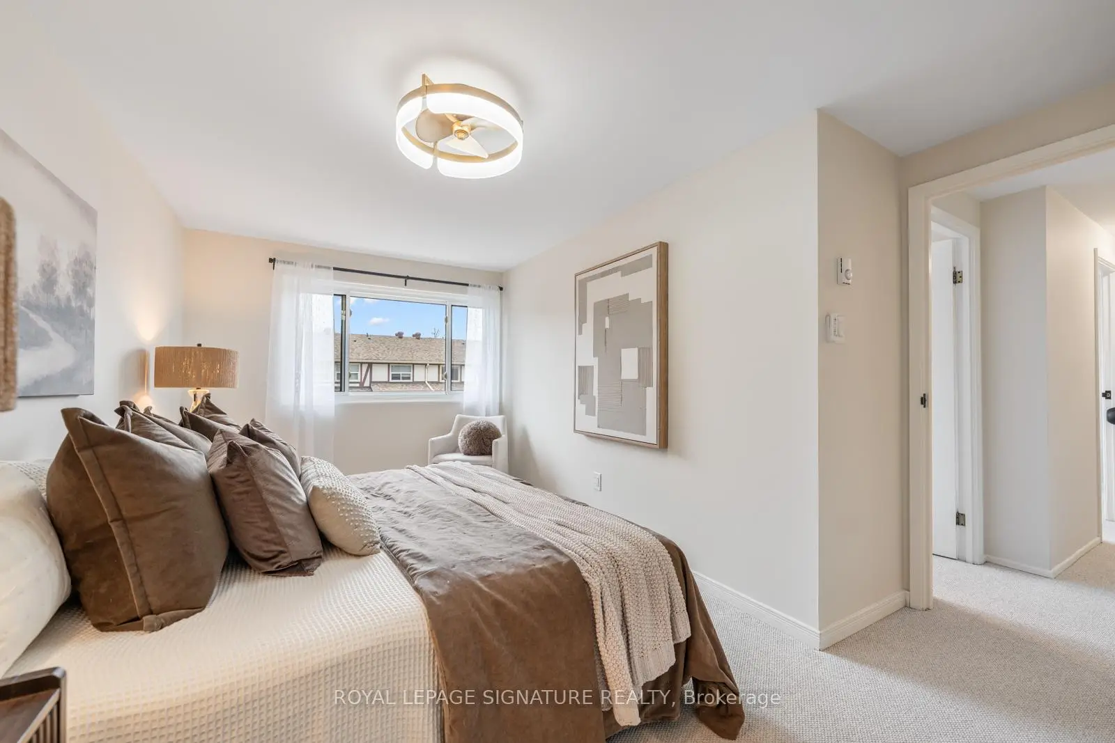 Say HELLO to The Fernways! This beautifully renovated townhouse is a rarely offered end unit and enjoys the convenience of a built-in garage and parking for two cars. Extensively updated throughout, the modern kitchen features quartz countertops, abundant cabinetry, and generous prep space-perfect for everyday living and entertaining. A main-floor 2-piece bath adds convenience, while all bathrooms have been stylishly upgraded to today's high standards, with new vanities and comfort-height toilets. Freshly painted in a calming neutral palette, the home features upgraded hardware and contemporary light fixtures. New broadloom on the stairs and second floor adds warmth and comfort underfoot. The spacious primary bedroom easily accommodates a king-sized bed and boasts a massive wall-to-wall closet. Two additional well-proportioned bedrooms each feature double closets, ideal for family living or home office needs. Recent upgrades continue with all new windows and patio doors (2026), as well as new electric baseboards on the main and second levels, helping to improve energy efficiency and keep hydro costs down. Low maintenance fees include Bell FIBE internet, water, sewage, and garbage collection. Enjoy the ease of professionally maintained common grounds, including snow removal. Located in a quiet, family-friendly neighbourhood, this home is within walking distance to schools, parks, andshopping. A convenient pedestrian pathway leads to Finch Avenue with direct transit access to the subway. Close to Highways 400 and 401 for effortless commuting. An excellent pre-listing home inspection is available upon request. Truly move-in ready-nothing to do!