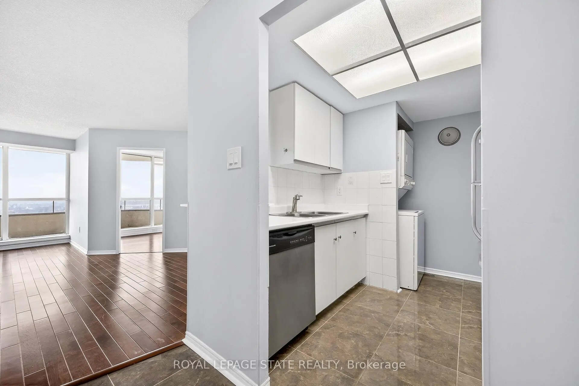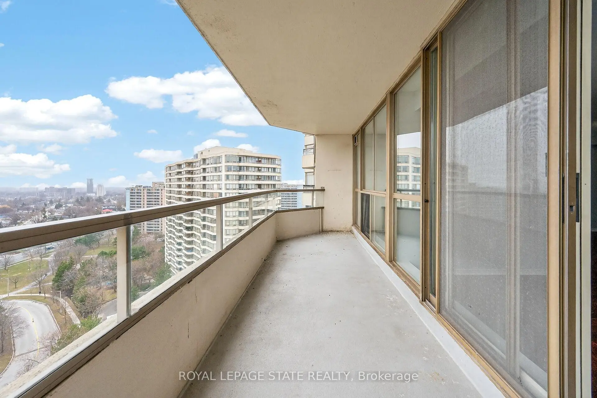 Gorgeous, bright and sun-filled unit with breathtaking views for miles! This spacious 2-bedroom, 1-bath suite features a functional split-bedroom layout and large windows that flood the space with natural light. Hardwood floors throughout enhance the warm and inviting atmosphere.Freshly painted with updated fixtures, this well-maintained unit is move-in ready. The standout feature is the exceptionally large private balcony-one of the best in the building-offering stunning city views and the perfect space to relax, unwind, or entertain while enjoying the sunshine.This sought-after building offers 24-hour gated security for peace of mind and an impressive selection of amenities, including an indoor swimming pool, squash courts, fitness centre, party room, community garden, and ample visitor parking.Conveniently located with groceries and restaurants right at the base of the building, and just steps to TTC, subway access, schools, and the GO Train. Only minutes to downtown. Includes one parking space and a storage locker.An incredible opportunity to own a bright, spacious unit with unmatched balcony space and excellent amenities in a prime location!