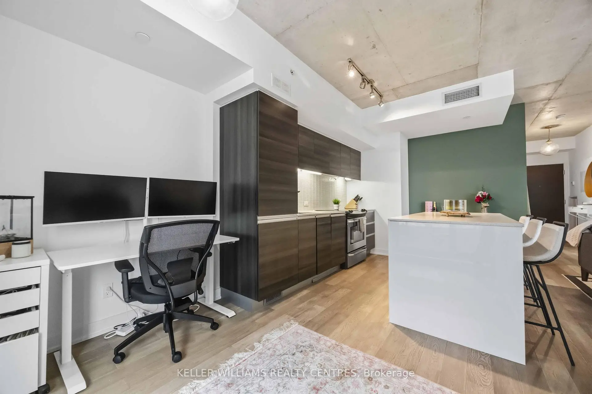 Bright. Spacious. Connected. This 1+den suite at 1190 Dundas St E offers just under 700 sq ft of open-concept living with a standout oversized island at its core. The den adds flexibility-perfect for a home office or guest space. Soaked in natural light, the unit features a private balcony with gas BBQ hookup for effortless outdoor entertaining. Upgrades include new flooring (2020), a new fridge (2025), and an updated bathroom vanity (2024). Plus, enjoy a same-floor locker and future Ontario Line access nearby-bringing unbeatable convenience and connectivity.
