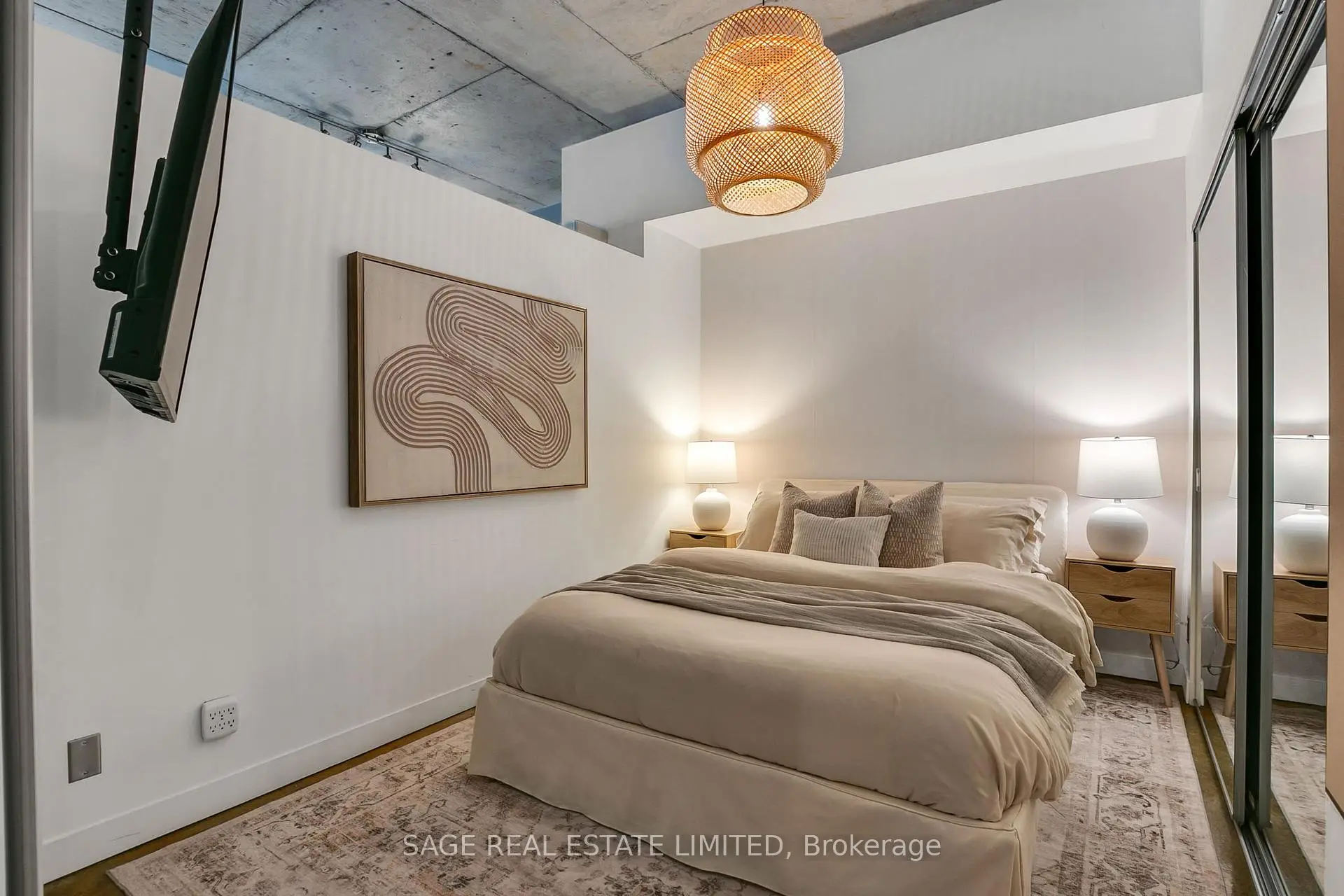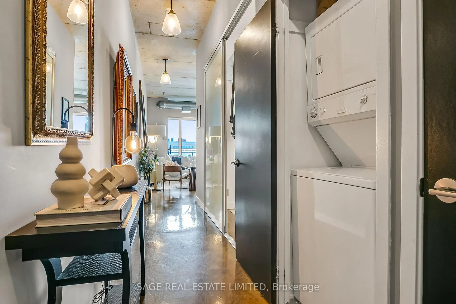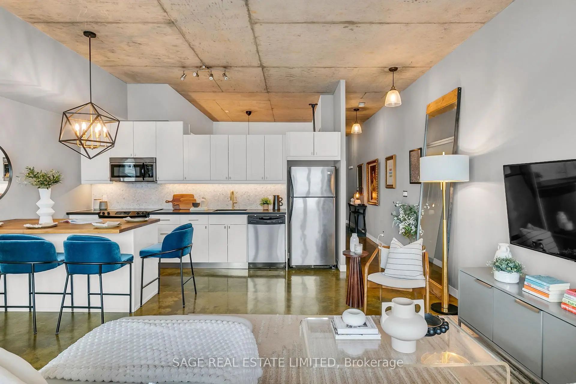 Welcome to The Printing Factory Lofts in the heart of Leslieville, Toronto's east-end neighbourhood known for its independent spirit, vibrant Queen Street corridor, and authentic hard loft conversions. This south-facing 1 bedroom, 1 bathroom residence offers over 700 square feet of thoughtfully designed living space in one of the area's most coveted industrial buildings. Inside, original green stained concrete floors ground the space in true hard loft character. A soaring heritage pillar is revealed as you move through the unit, intentionally positioned to let the layout unfold with subtle architectural drama. The updated kitchen and modernized bathroom feature clean, contemporary finishes that contrast beautifully with the building's industrial roots. Nothing to renovate. Nothing to rethink. Just move in. Living here means stepping directly into the rhythm of Leslieville. Morning runs to Woodbine Beach. Winter skating at nearby neighbourhood parks. Swim at local community pools. Patio evenings along Queen Street East. A two-minute walk to Crow's Theatre. Quick streetcar access downtown and easy routes out of the city via the DVP and Lakeshore. Ideal for young professionals seeking a stylish Toronto hard loft with downtown access, or for end users who value authentic architecture, community energy, and lifestyle over cookie-cutter condo living. This is for buyers who understand that location is not just proximity. It is immersion. This is where Leslieville actually happens.