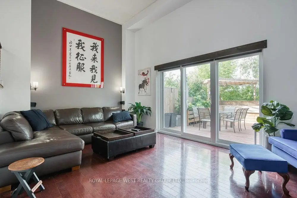 Welcome to Long Branch Village, where space, privacy, and convenient living come together. Tucked away on a quiet private cul-de-sac of just 10 exclusive townhomes, this rarely offered 3-bedroom, 3-storey residence delivers the feel of a freehold with the convenience of condo living. Step inside to discover a bright, open-concept updated kitchen featuring stone countertops and stainless steel appliances, seamlessly connected to a formal dining area overlooking the expansive living room. The sun-filled living room boasts cathedral ceilings and a walk-out to a generous private deck-perfect for entertaining or relaxing outdoors. This unit is complete with three bedrooms, an updated 3-piece bathroom, a finished basement, built-in garage, and two parking spaces provide everyday convenience and flexibility. Enjoy a walkable lifestyle just steps to the lake, parks, schools (including French Immersion), TTC, GO Transit, and all the charm Long Branch has to offer. This is a move-in-ready home with outstanding space, location, and value in one of South Etobicoke's most sought-after communities. **low maintenance fees**