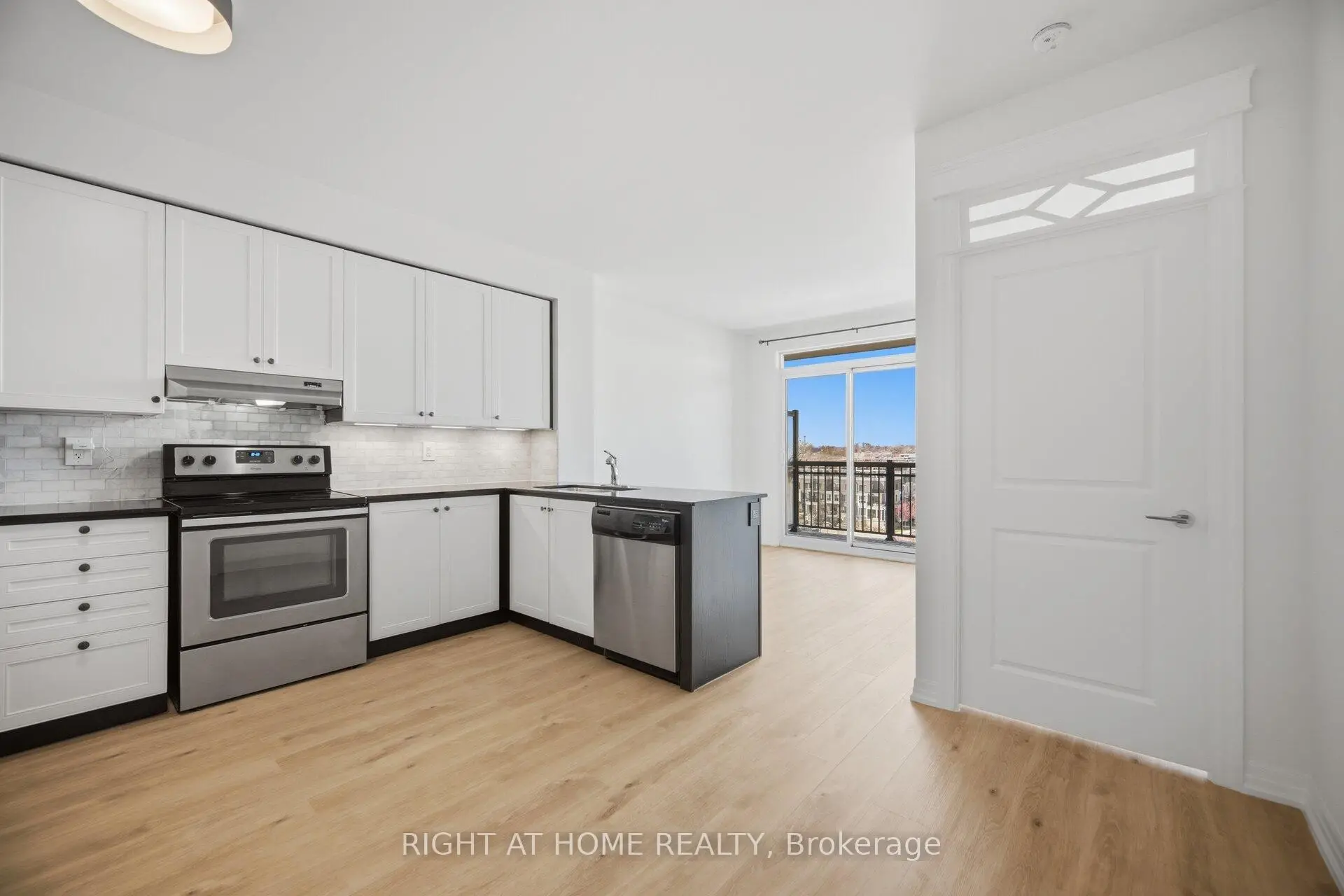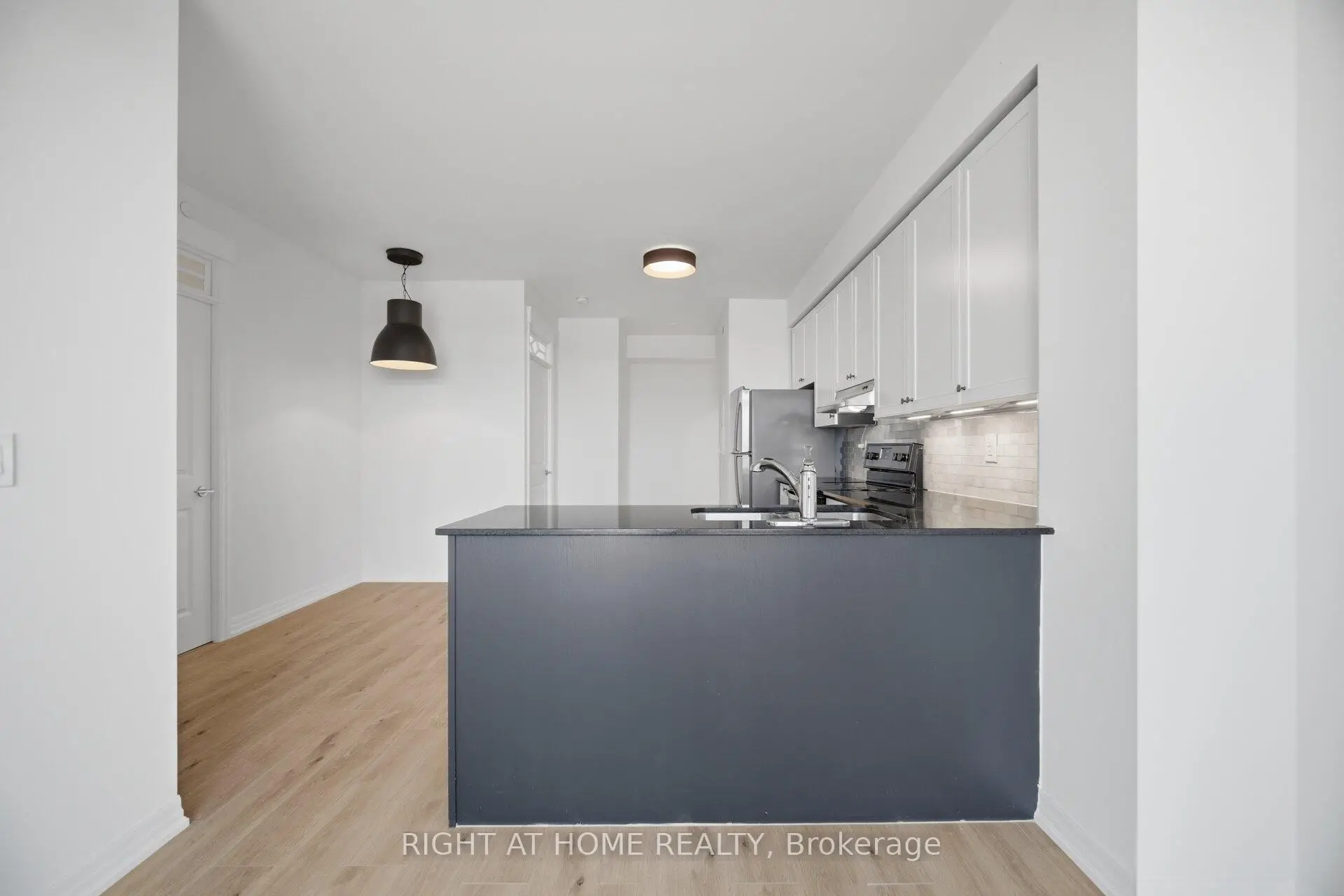 Welcome to the award-winning Watermark Condos in the sought-after Long Branch community. This freshly painted 2-bedroom corner suite offers approximately 791 sq. ft. of thoughtfully designed living space, featuring new vinyl laminate flooring throughout. Located on the penthouse level of an exclusive 7-storey boutique building, the unit boasts 9 ft ceilings and an abundance of natural light. The open-concept layout is anchored by a modern kitchen with granite countertops, stainless steel appliances, and a marble backsplash-perfect for both everyday living and entertaining. The spacious bedrooms provide comfort and flexibility, while the ensuite laundry includes full-size front-load washer and dryer for added convenience. Includes one owned underground parking space and a nearby locker. Residents enjoy access to Amenities like the exercise room, a beautiful rooftop patio deck as well as a stylish party/meeting room with a patio, ideal for hosting and relaxing. Ideally located just steps to the lake, transit, parks, and local shops, this is an excellent opportunity to live in one of Long Branch's most desirable communities.
