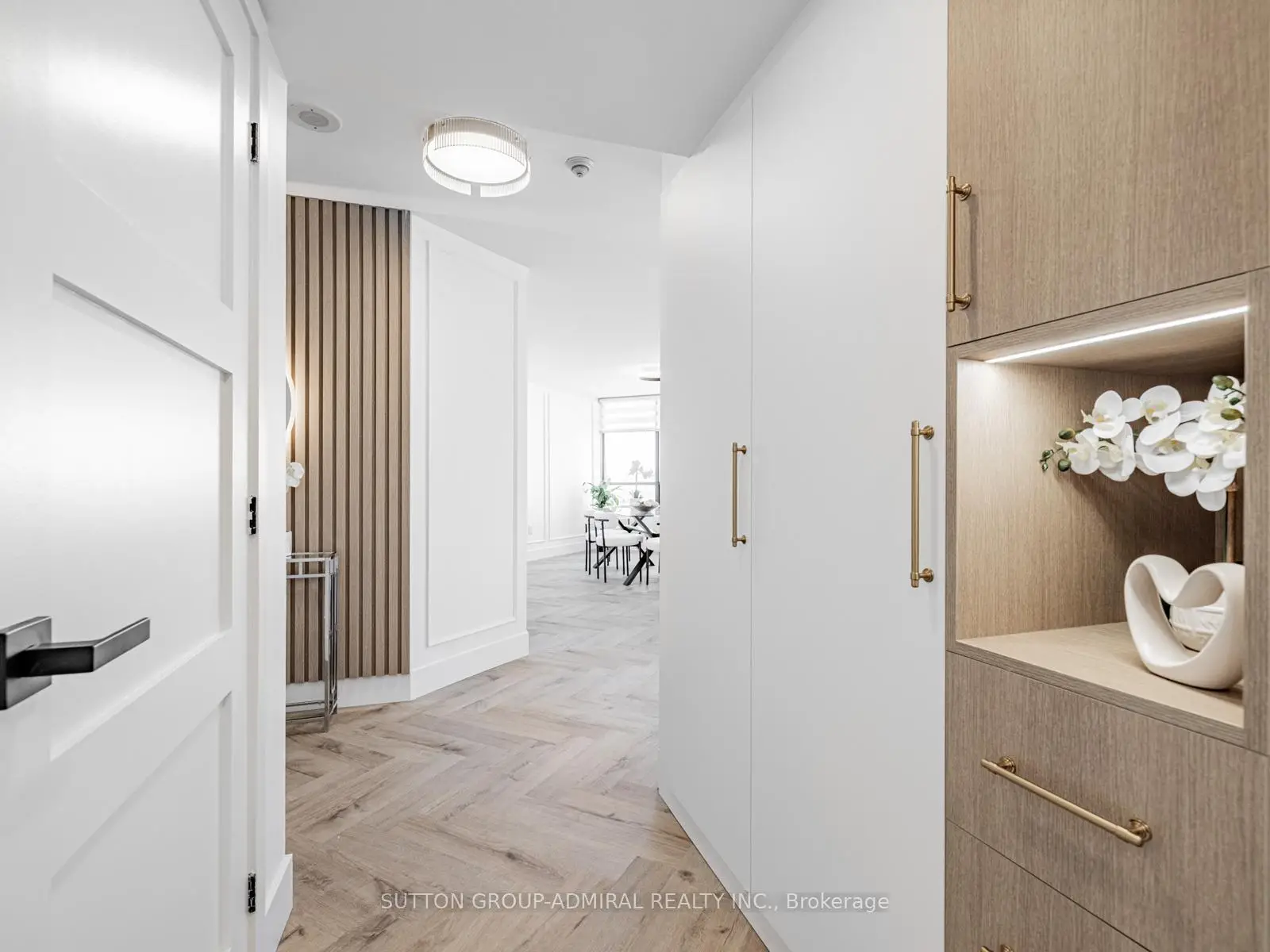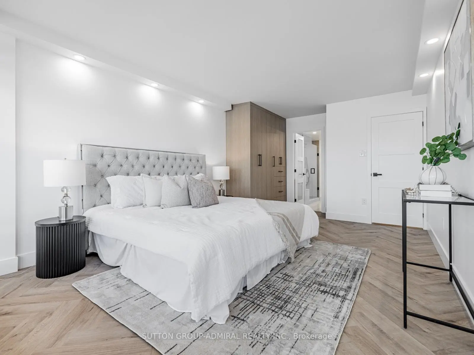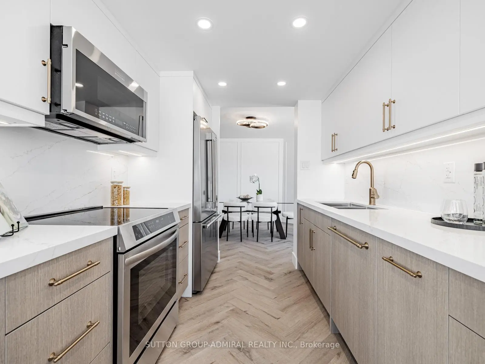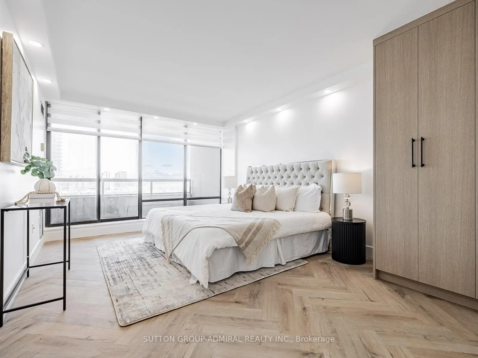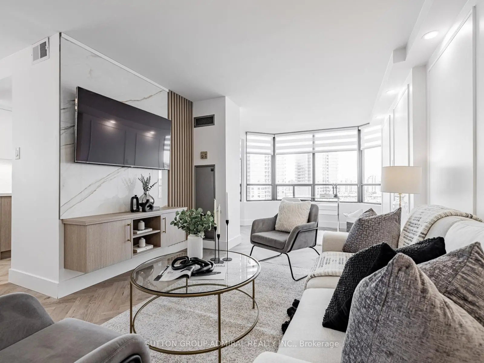 Absolutely stunning and meticulously renovated condo located in the prestigious Promenade Towers, offering approximately 1,250 square feet of luxury living in the heart of Thornhill. This bright and spacious 2-bedroom, 2-bathroom suite showcases top-tier finishes throughout, including elegant herringbone flooring, smooth flat ceilings, pot lighting, and premium window treatments. The designer kitchen is a true showpiece, featuring quartz countertops, modern cabinetry, and an efficient layout thats perfect for both everyday living and entertaining. Both bathrooms have been beautifully updated with spa-inspired elements: premium tiling and faucets, glass enclosed showers, automatic lighting and a private makeup vanity. Thoughtful custom closet systems maximize storage and organization, adding to the homes functionality and style. The expansive living and dining areas are perfect for relaxing or hosting, and include a bonus brand new TV , ready for your enjoyment. Two walkouts lead to an oversized private balcony with sweeping views of the Thornhill skyline, ideal for morning coffee or evening sunsets. This well run building offers low and all-inclusive maintenance fees with a full range of high-quality amenities, including 24-hour security, a swimming pool and indoor whirlpool, a fully equipped fitness centre, a renovated party room, and tennis/pickleball courts. Building is currently modernizing all hallways--almost complete! Enjoy the convenience of an unbeatable location just steps from Promenade Mall, public transportation, schools, parks, and places of worship. This is a rare opportunity to own a turnkey home in one of Thornhill's most desirable and vibrant communities, where luxury, comfort, and convenience converge.
