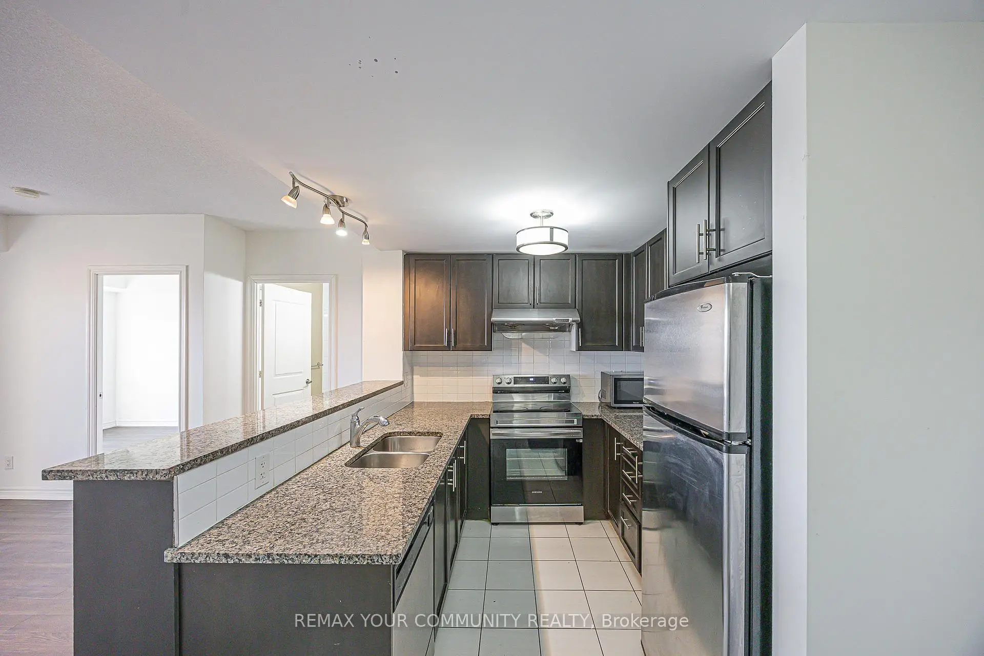 Bright & Spacious 2 Bed, 2 Bath @ Jane/Rutherford. Premium & Modern Finishes Throughout. Open Concept Floorplan W/ Functional Layout. Beautiful Kitchen W/ Breakfast Bar, Tile Flooring, Backsplash & Track Lighting. Large Living/Dining Rm W/ Contrasting Laminate Flooring & W/O To Balcony. Primary Bdrm Features Large Closet, 4Pc Ensuite, Overhead Lighting & Sizable Window. Luxurious Building W/ Many Amenities Including: Superb Amenities with 24 Hour Gatehouse security, Concierge, Pool, Shopping, Cafes, Vaughan Mills Mall, Schools, Parks, Canada's Wonderland, Transit, GO Train, Luxury at it's Finest!