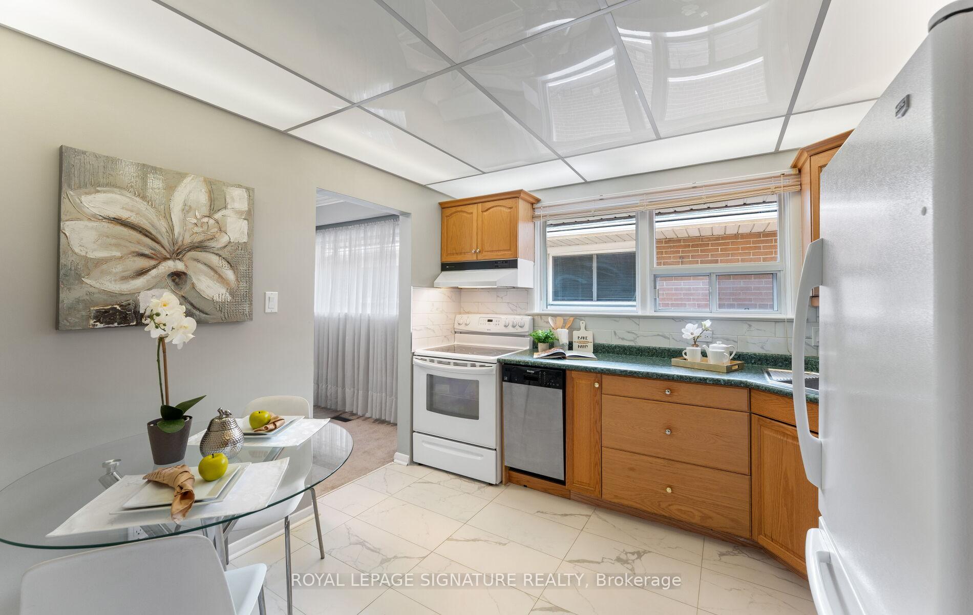 Welcome home to this exceptionally well-maintained bungalow on a generous 45 x 142 feet lot in prime Etobicoke! With about 2,200 square feet of finished living space, this 3+1 bedroom, 2-bathroom home includes a carport & parking for three vehicles. The main floor features a bright living & dining area with a charming bay window, an eat-in kitchen, a spacious 3-piece bath with a walk-in shower & three bedrooms-each comfortably accommodating a queen-sized bed. Clean and move-in ready, with excellent potential to update to your personal style. Hardwood floors underneath the carpet on the main floor. The fully renovated basement (2025) is a true standout, offering tall ceilings, new laminate floors throughout, a separate entrance, an oversized rec room with a cozy natural gas fireplace, a 4-piece bath with a brand-new bathtub, an office area, an additional bedroom, a large laundry/utility room & abundant storage - making it ideal for extended family or nanny suite. The west-facing backyard is a highlight: sunny, private & expansive. It features two sheds, a large deck with an electric awning, quality outdoor furniture, a BBQ with natural gas hookup, 3 hose connections for lawn irrigation - perfect for relaxing or entertaining. Located in a safe, family-friendly neighborhood known for its charm & strong community spirit. Walk to two nearby parks (one with a pool!) and enjoy easy access to Centennial Park, top-rated schools, shopping, public transit & major highways. A wonderful opportunity-offering outstanding value in lot size, condition, sought-after bungalow layout & a good location! Included: existing appliances, electric light fixtures, window coverings. High-efficiency furnace (2025), hot water tank (2025), new thermostat (2025), roof replaced in 2022. Air conditioning (2008). Outdoor patio set, a BBQ with natural gas hookup, two storage sheds. Outside censor lights. Wall insulation. Sump pump & backwater valve installed in 2025. Home inspection report available.